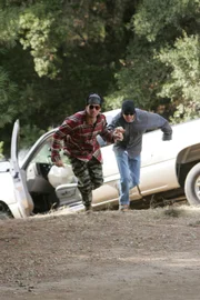 Flucht in KettenDie NCIS hat Tony (Michael Weatherly, l.) als Undercover-Agenten auf einen Kriminellen, Jeffrey White (Frank Whaley, r.), angesetzt, der mit einem Komplizen irakische Antiquitäten gestohlen hat ...Bild: © CBS Television Lizenzbild frei