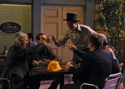 MenschenopferDer Junggesellenabschied von Jimmy ist im vollen Gange: Gibbs (Mark Harmon, l.), McGee (Sean Murray, 3.v.l.), Jimmy (Brian Dietzen, 3.v.r.), DiNozzo (Michael Weatherly, 2.v.r.) und Ducky (David McCallum, r.) ...Bild: © CBS Television Lizenzbild frei