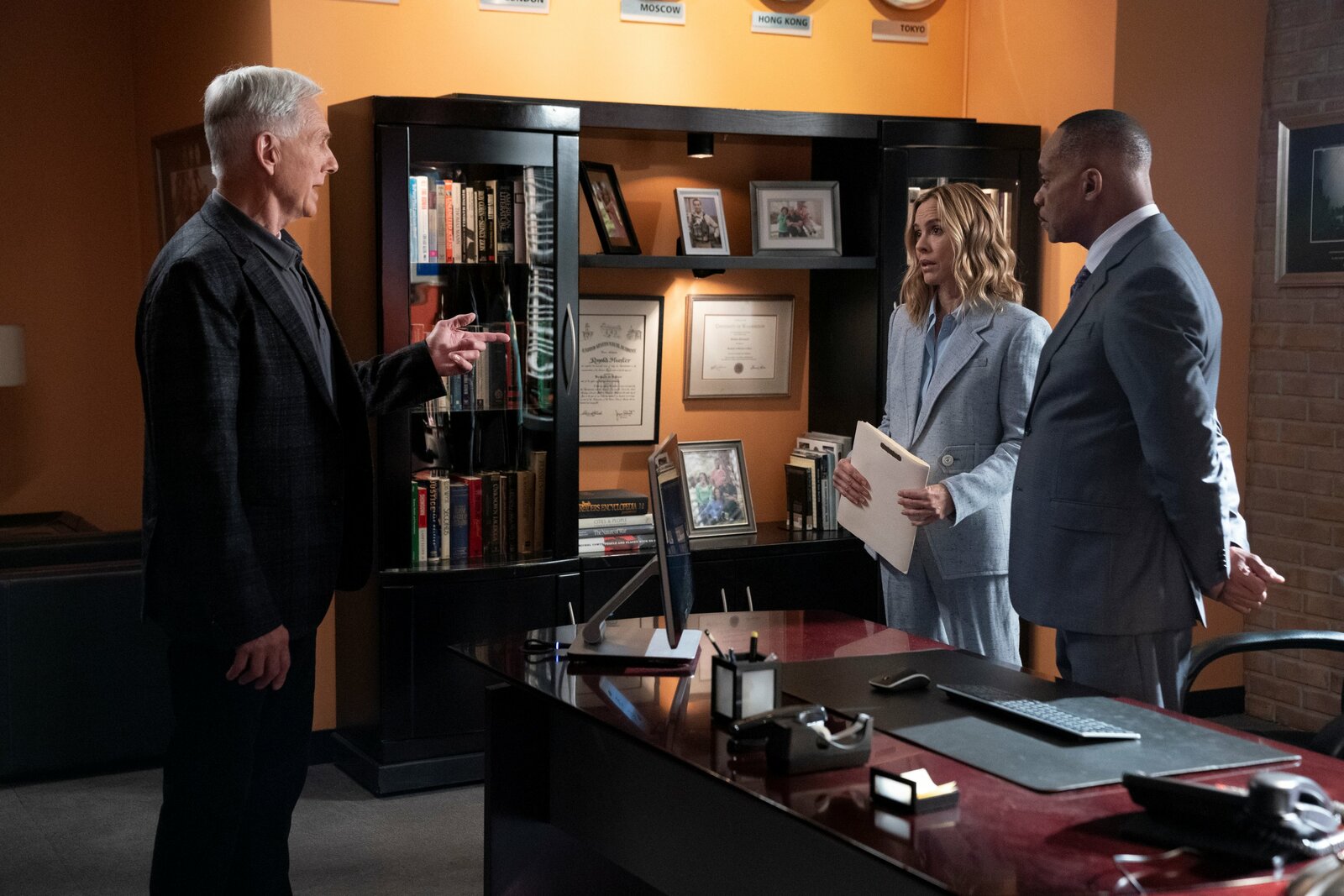 Die ArizonaMark Harmon as NCIS Special Agent Leroy Jethro Gibbs, Maria Bello as NCIS Special Agent Jaqueline "Jack" Sloane, Rocky Carroll as NCIS Director Leon VanceBild: © Sonja Flemming / CBS / CBS ENTERTAINMENT / ©2020 CBS Broadcasting Inc. All Rights Reserved.