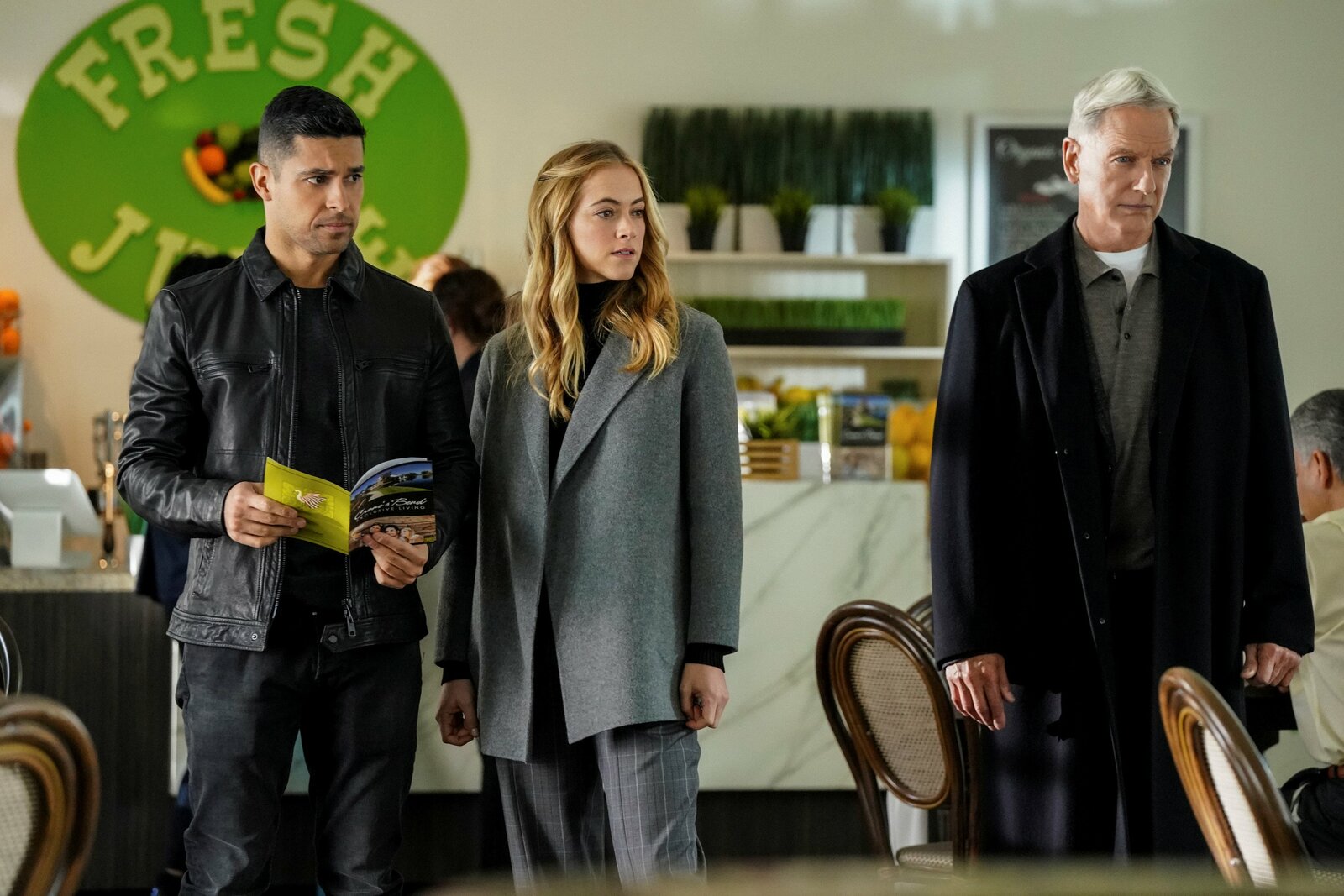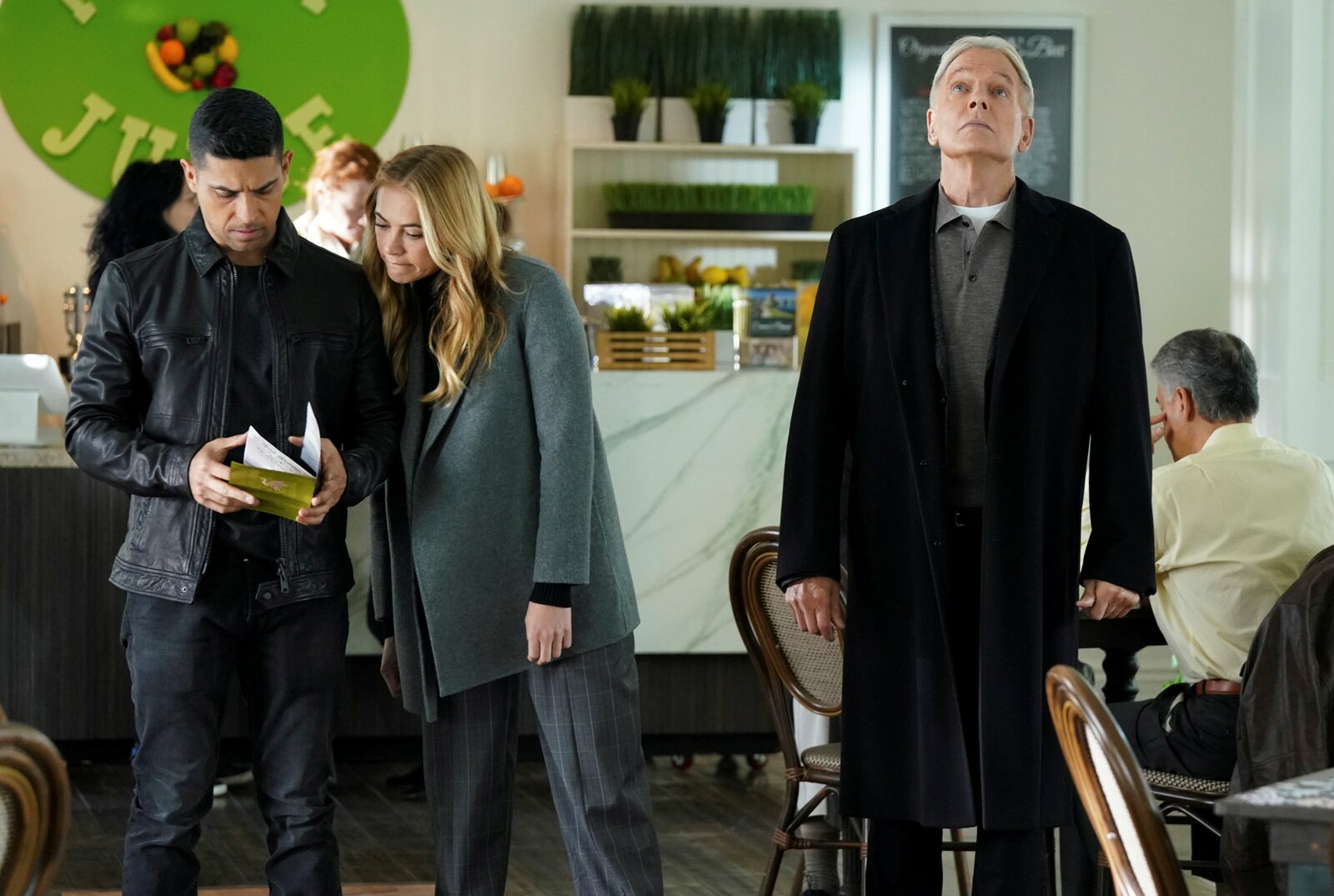 Phins allerbester TagWilmer Valderrama as NCIS Special Agent Nicholas "Nick" Torres, Emily Wickersham as NCIS Special Agent Eleanor "Ellie" Bishop, Mark Harmon as NCIS Special Agent Leroy Jethro GibbsBild: © Patrick McElhenney / CBS / CBS ENTERTAINMENT / ©2019 CBS Broadcasting, Inc. All Rights Reserved.
