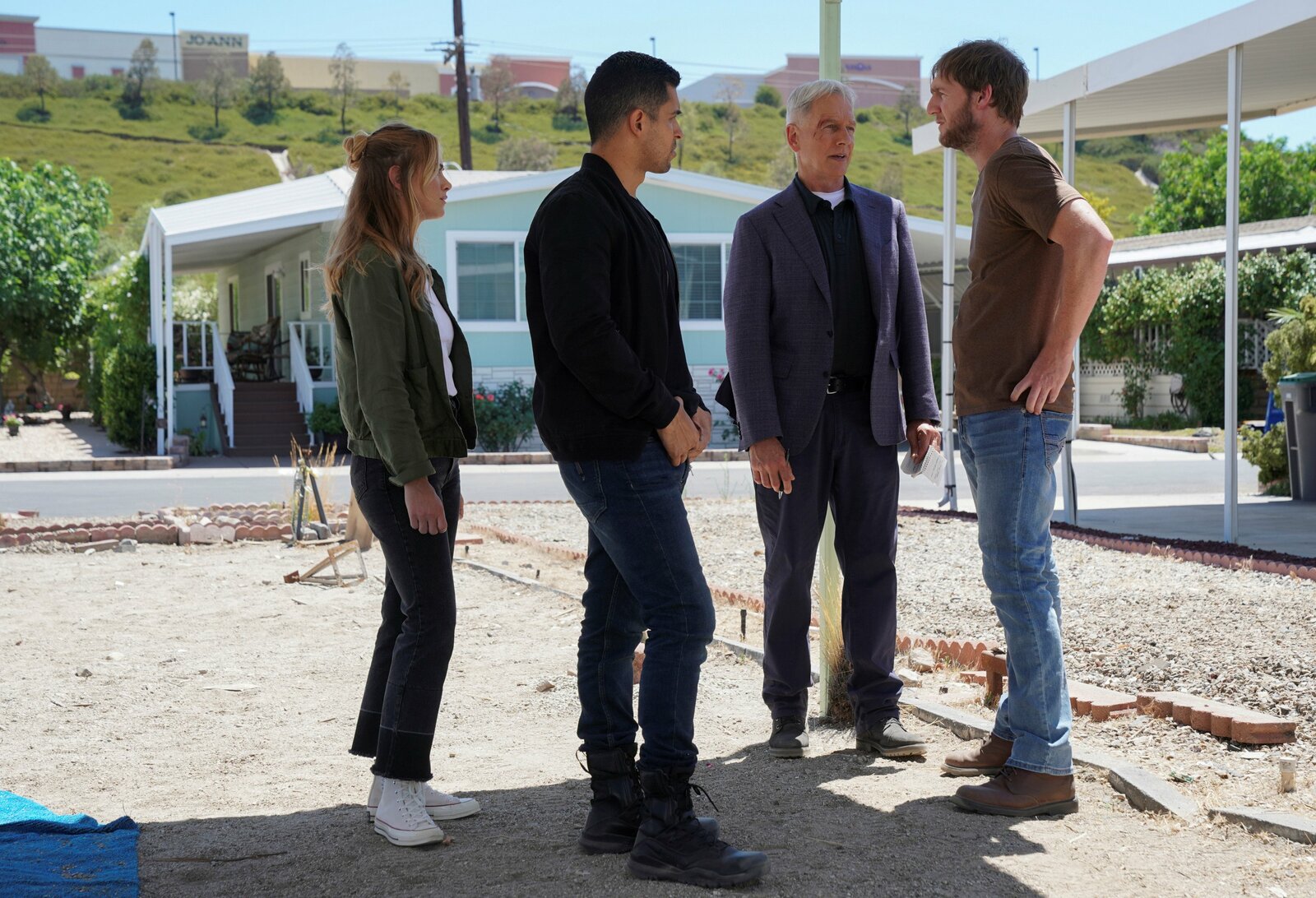 Tod durch GartenzwergEmily Wickersham as NCIS Special Agent Eleanor "Ellie" Bishop, Wilmer Valderrama as NCIS Special Agent Nicholas "Nick" Torres, Mark Harmon as NCIS Special Agent Leroy Jethro Gibbs, Cliff Chamberlain as Peter Buck.Bild: © Sonja Flemming / CBS / CBS ENTERTAINMENT / Inc. All Rights Reserved ©2019 CBS Broadcasting