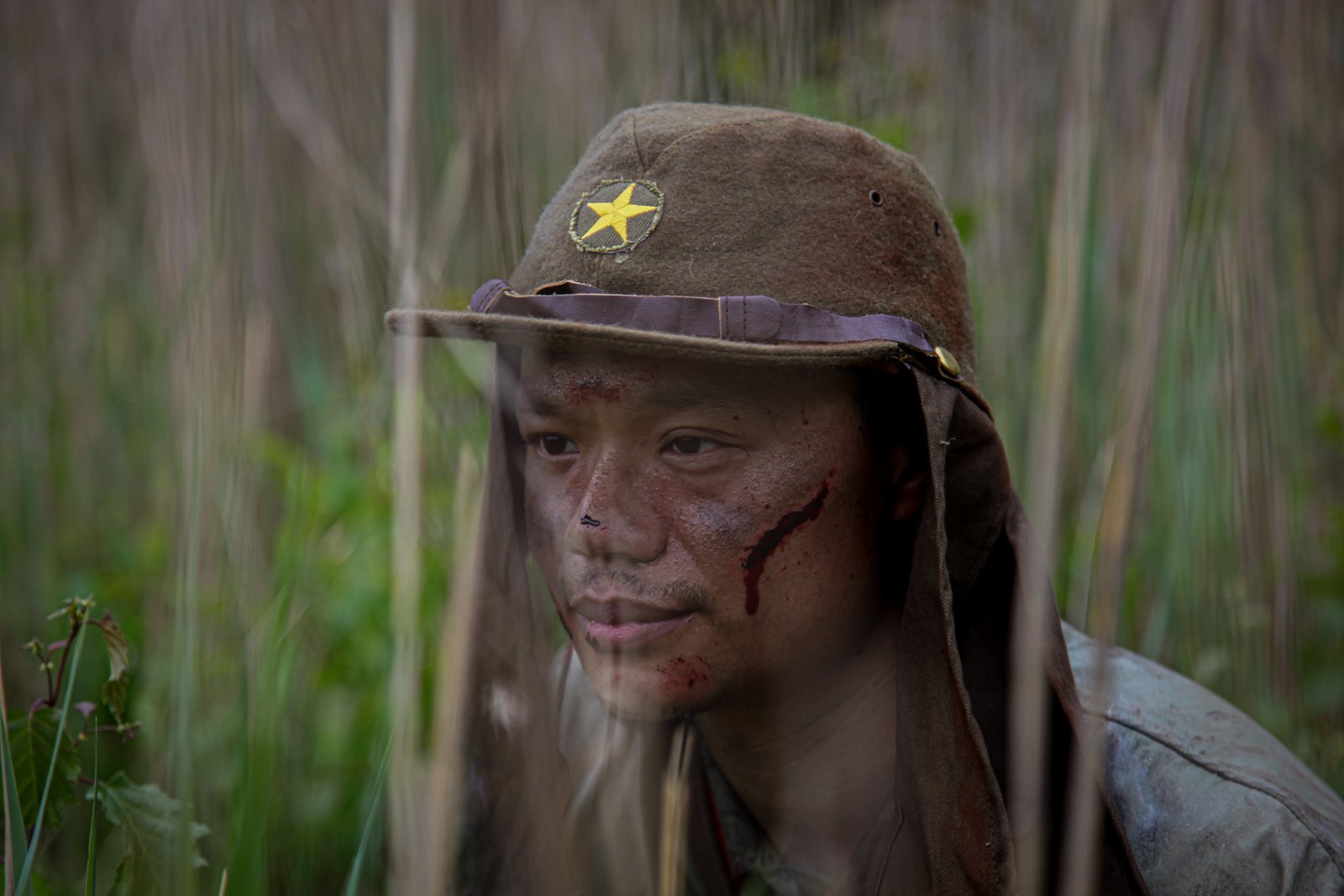 Kampf um GuadalcanalREENACTMENT - A Japanese Imperial Army troop in the reeds on Guadalcanal.Bild: © Darlow Smithson Productions / National Geographic
