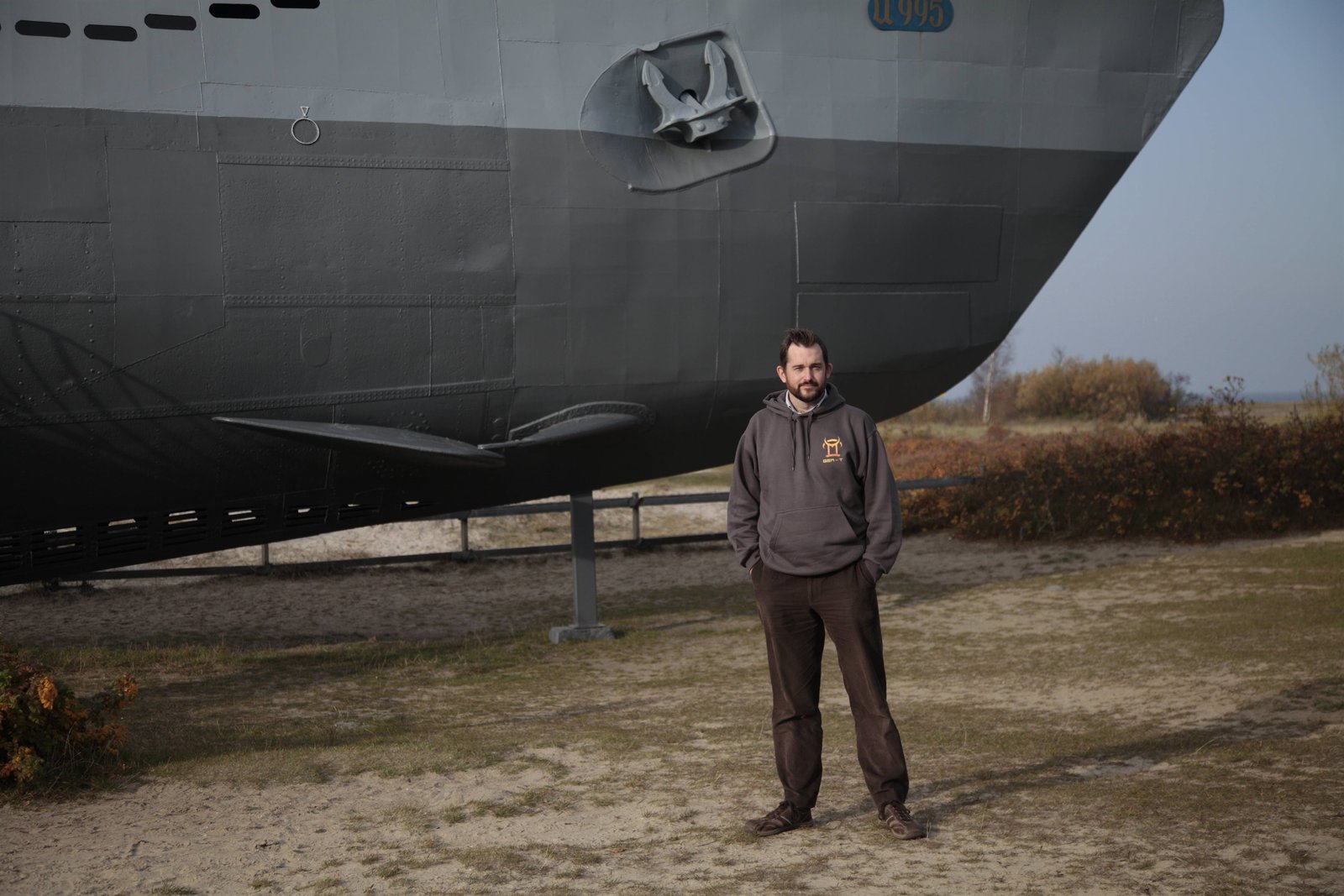 Super-U-BooteGERMANY- Dr Nick Bradbeer in front of U-995 Type VIIC U-boat.Bild: © DSP