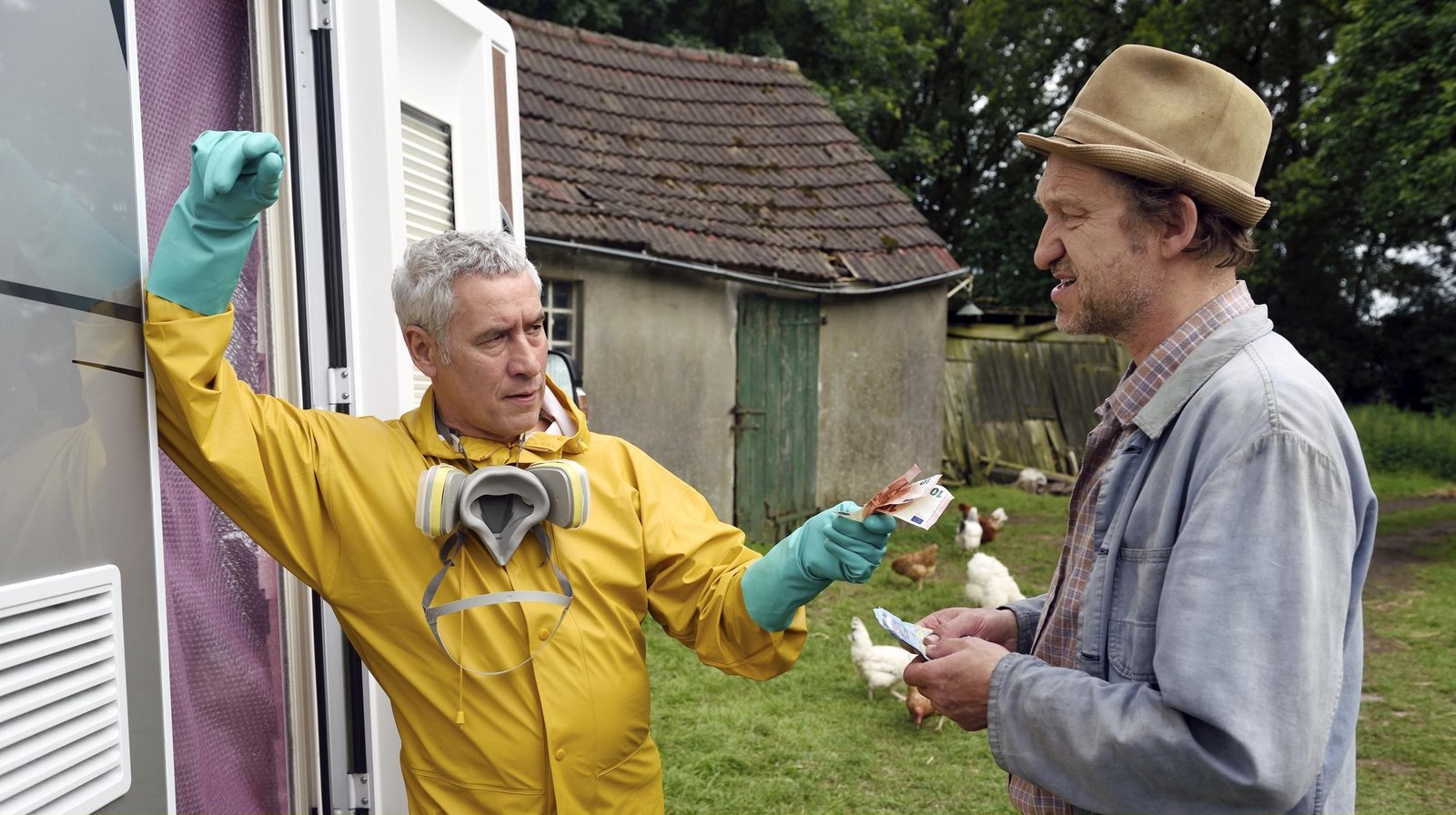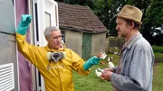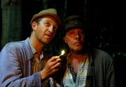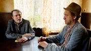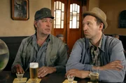 Unter DampfAuf dem Heimweg begegnet Adsche (Peter Heinrich Brix, r.) Fritz (Ralph Herforth, l.), einem Mann der behauptet „Tönnsen“ zu heißen und mit seinem Wohnmobil auf der Suche nach einem Stellplatz ist. Gegen einen ordentlichen Nennwert bietet Adsche ihm an, auf Brakelmanns Hof zu parken.Bild: © NDR/Nicolas Maack