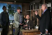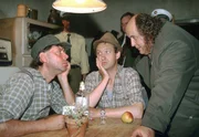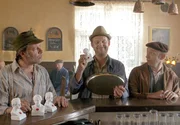 Die mit dem Wolf tanzenPeter berichtet von der ausgesetzten Prämie. v.l.n.r.: Kuno (Sven Walser), Adsche (Peter Heinrich Brix), Brakelmann (Jan Fedder), Peter (Uwe Rohde).Bild: © NDR/Nicolas Maack