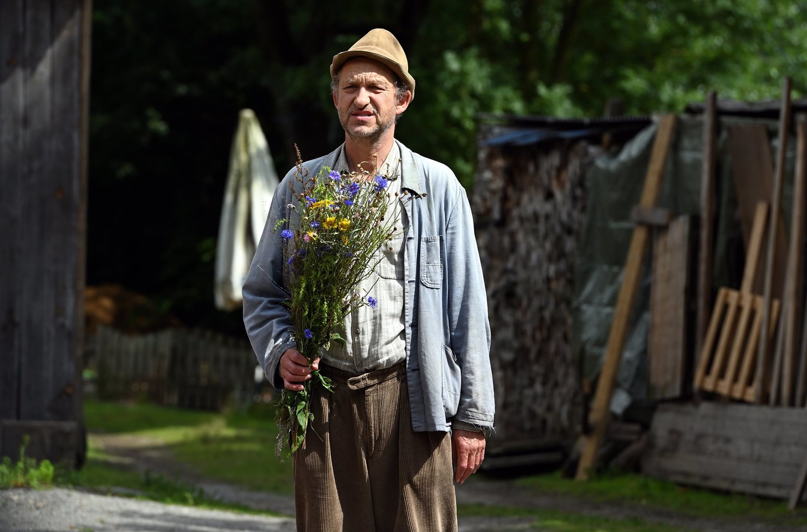GerlindeAdsche (Peter Heinrich Brix) ganz aufgeregt: Gerlinde ist wieder da! Der liebevoll gepflückte Feldblumenstrauß sagt mehr als 1000 Worte! Weitere Fotos auf Anfrage.Bild: © NDR/Nicolas Maack