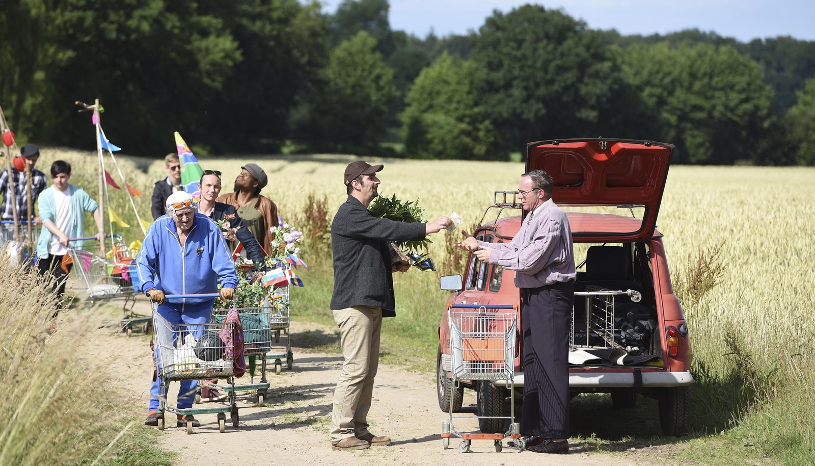 Olympische Rekorde, Teil 1: RekordFür Jürgen Seute (Dirk Martens, re.) lohnt der Einkaufswagenverkauf, immer mehr Menschen wollen bei dem Verlangsamungs-Marsch mitmachen.Bild: © NDR/Nicolas Maack