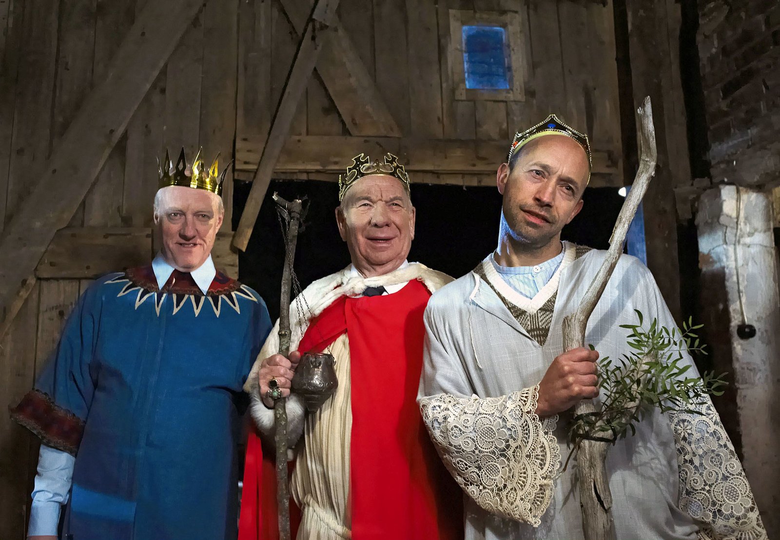 WeihnachtenNDR Fernsehen NEUES AUS BÜTTENWARDER, "Weihnachten", am Montag (23.12.13) um 22:00 Uhr. Die heiligen drei Könige. Theaterprobe in der Remise vom Dorfkrug. v.l.n.r.: Wirt Shorty (Axel Olsson), Bürgermeister Schönbiehl (Günter Kütemeyer) und Stallknecht Kuno (Sven Walser)Bild: © NDR/Sandra Hoever