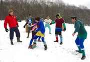 LaboretteDas Forschungsprojekt begeistert niemanden, das Honorar hingegen alle. Die Forscherin Anne Tersticken (Isabel Bongard, li.) ist mit dem Verlauf des Forschungsprojekts nicht zufrieden, da sich die Dorfbewohner, Dorfpolizist Peter (Uwe Rohde), Adsche (Peter Heinrich Brix) Shorty (Axel Olsson) Günther Griem (Jürgen Uter) Heinzi (Hendrik v. Bültzingslöwen) und Kuno (Sven Walser, v.re.n.li.) von ihrer Sonnenseite zeigen, unnatürlich sind und Werbebotschaften in eigener Sache in die Welt hinaustragen.Bild: © NDR/Uwe Ernst