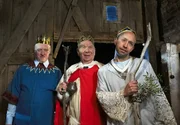 WeihnachtenDie heiligen drei Könige. Theaterprobe in der Remise vom Dorfkrug. v.l.n.r.: Wirt Shorty (Axel Olsson), Bürgermeister Schönbiehl (Günter Kütemeyer) und Stallknecht Kuno (Sven Walser)Bild: © NDR/Sandra Hoever