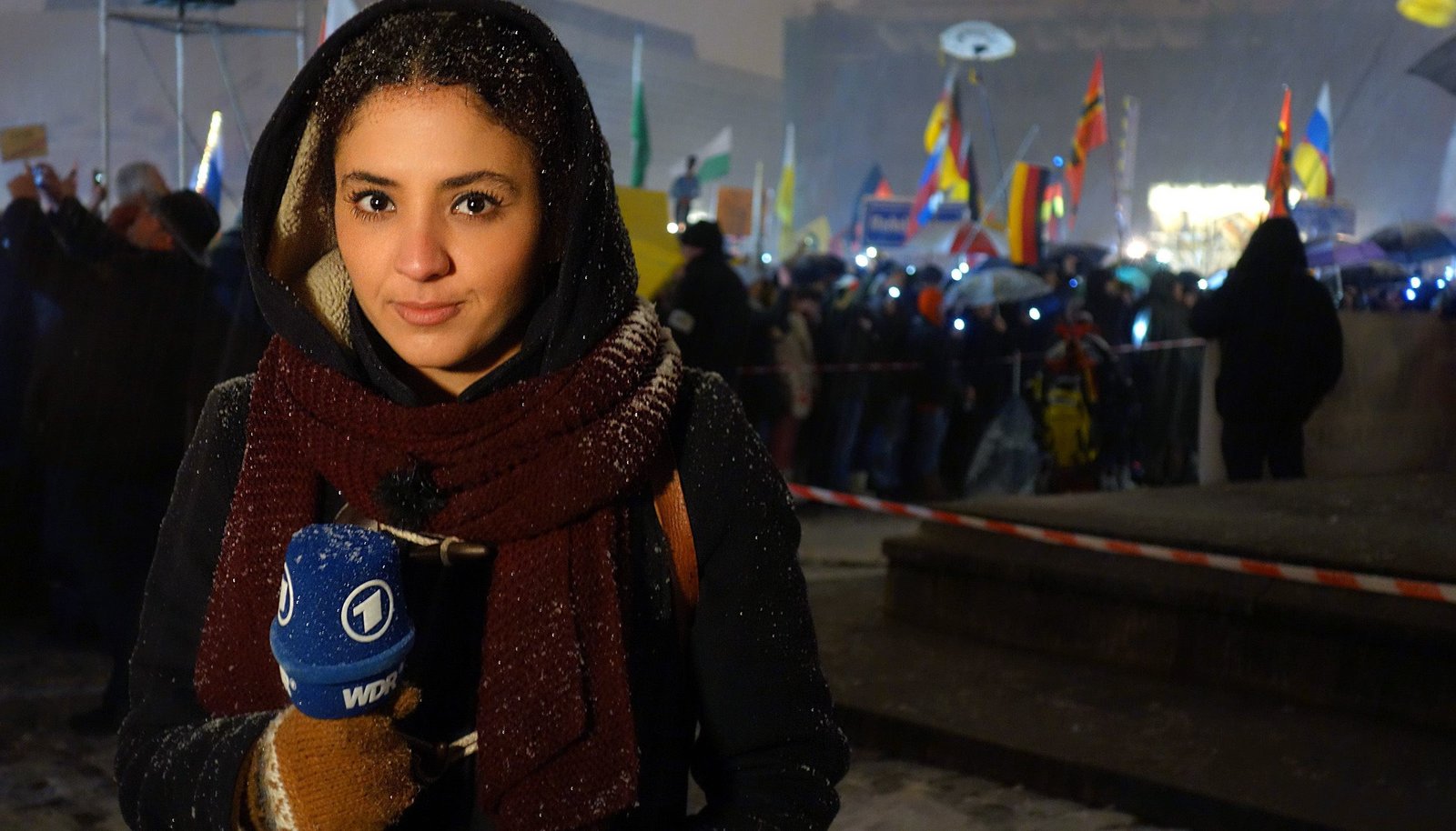 Moderatorin Siham auf einer Pegida-Demonstration in Dresden.Bild: © WDR/tvision