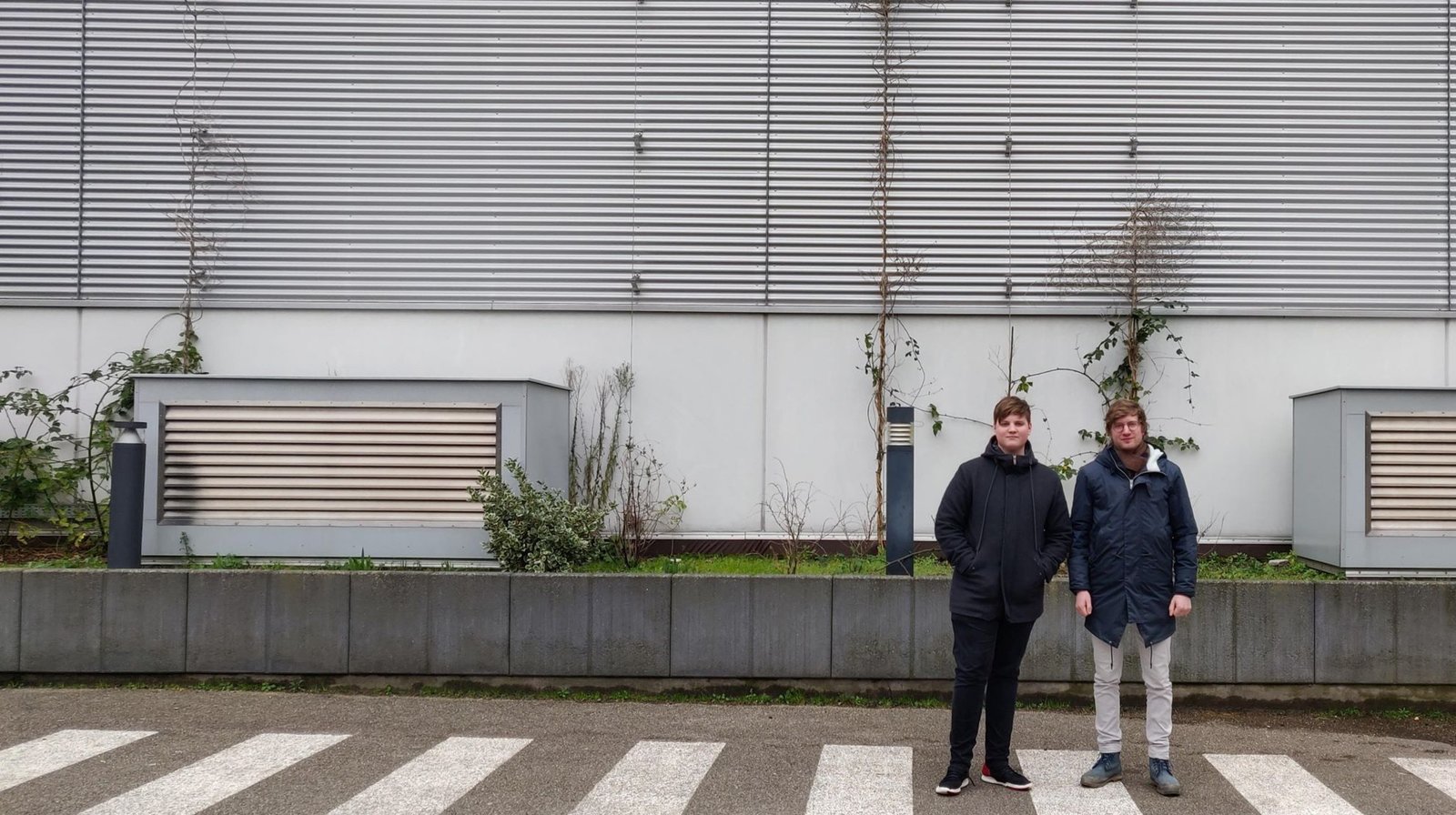 Reporter Robert (r) trifft den 14-jährigen Alex an seiner Schule, einem jüdischen Gymnasium. Die Schule ist durch eine hohe Mauer und verschiedene Sicherheitsmaßnahmen geschützt.Bild: © WDR/tvision