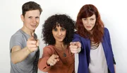 ARD/WDR NEUNEINHALB, "10 Jahre "neuneinhalb"", am Samstag (05.04.14) um 08:25 Uhr im ERSTEN. Die "neuneinhalb" Moderatoren v.l.n.r. : Malin Büttner, Siham El-Maimouni und Johannes BüchsBild: © WDR/Melanie Grande