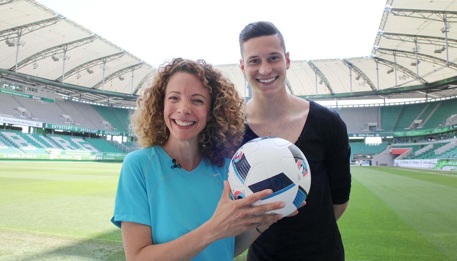 Moderatorin Gesa trifft Julian Draxler, Nationalspieler und Fußballweltmeister von 2014 zum Kicken.Bild: © WDR/tvision
