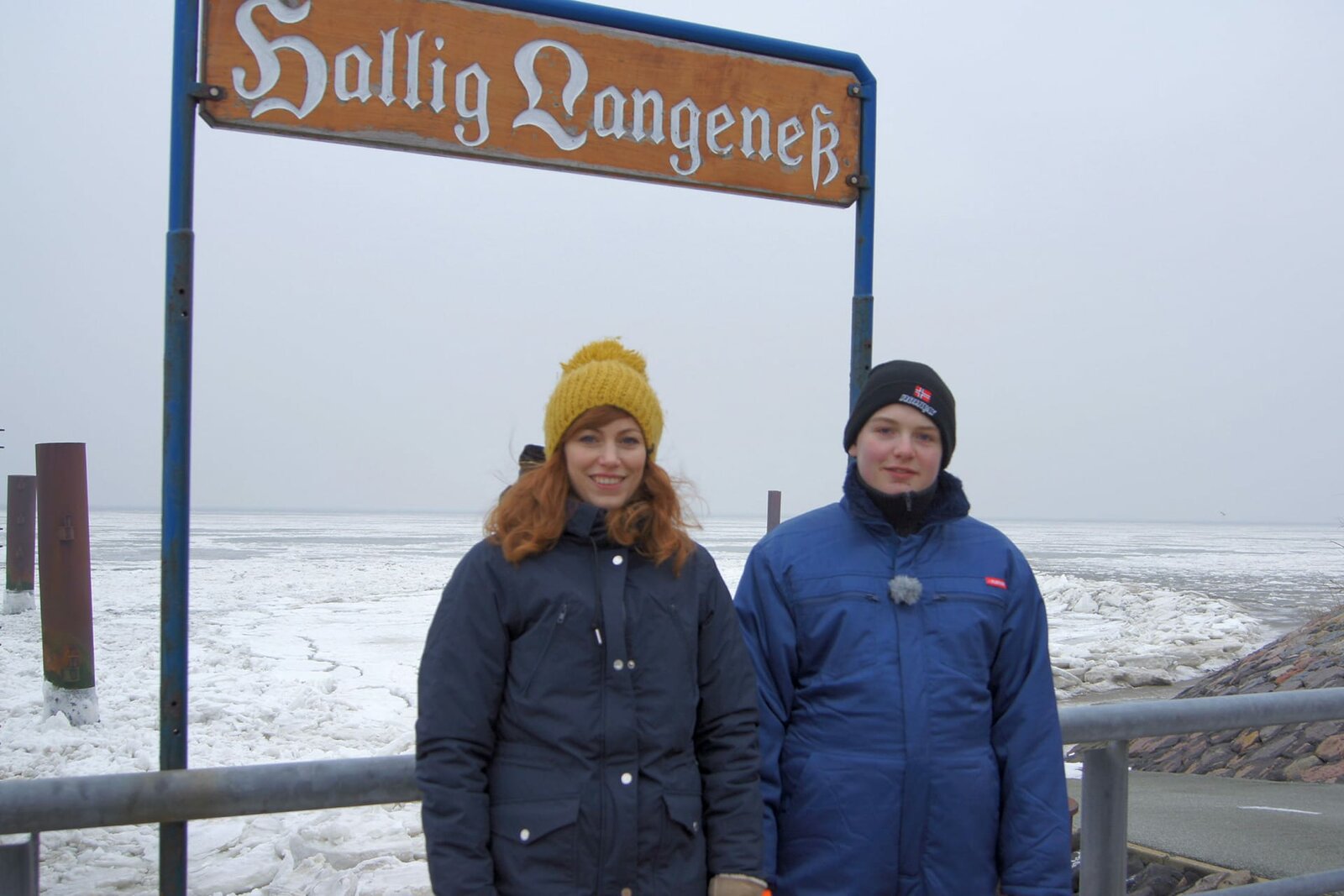 ARD/WDR NEUNEINHALB, "Einsame Insel - Winter auf Hallig Langeneß", am Samstag (31.01.15) um 08:25 Uhr im ERSTEN. Malin (l) mit Nils am Anleger von Hallig Langeneß.Bild: © WDR/tvision