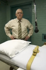 In den Todeszellen von HuntsvilleHUNTSVILLE, TEXAS: Warden Charles O'Reilly stands at the head of the gurney used in lethal injection. This picture was taken inside the Death Chamber at the Huntsville "Walls" Unit - the most active death chamber in the United States. All executions ordered by the State of Texas take place at O'Reilly's unit, under his responsibility. To date, he has witnessed 100 executionsBild: © James O. Fraioli / National Geographic