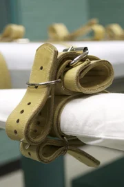 In den Todeszellen von HuntsvilleHUNTSVILLE, TEXAS: Close up of straps attached to the gurney used for lethal injection in the Death Chamber in the Huntsville "Walls" Unit. More executions take place in Texas at the Death Chamber at Huntsville than in any other state. 423 inmates were executed between the years 1982-2008.Bild: © James O. Fraioli / National Geographic