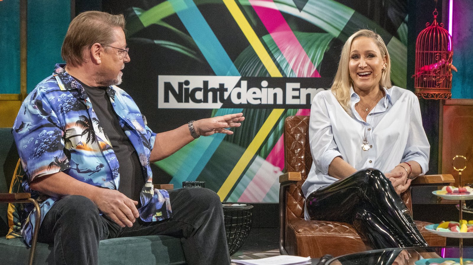 Sex & Partnerschaft (Janine Kunze)Moderator Jürgen von der Lippe (l) mit Gast Janine Kunze.Bild: © WDR/Max Kohr