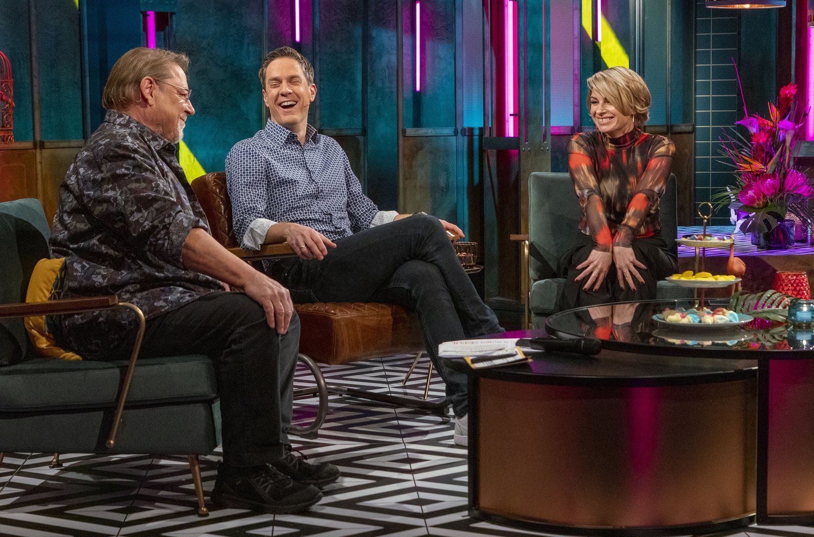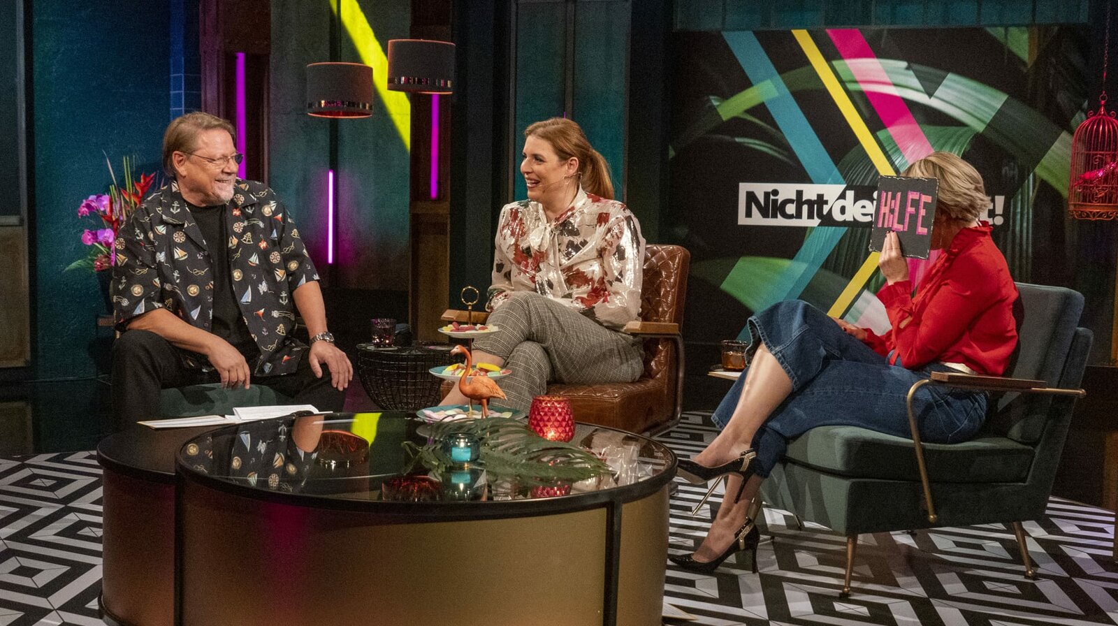 Die lieben Kinder - Mit Elena UhligModerator Jürgen von der Lippe (l) und Sabine Heinrich (r) mit Gast Elena Uhlig.Bild: © WDR/Max Kohr