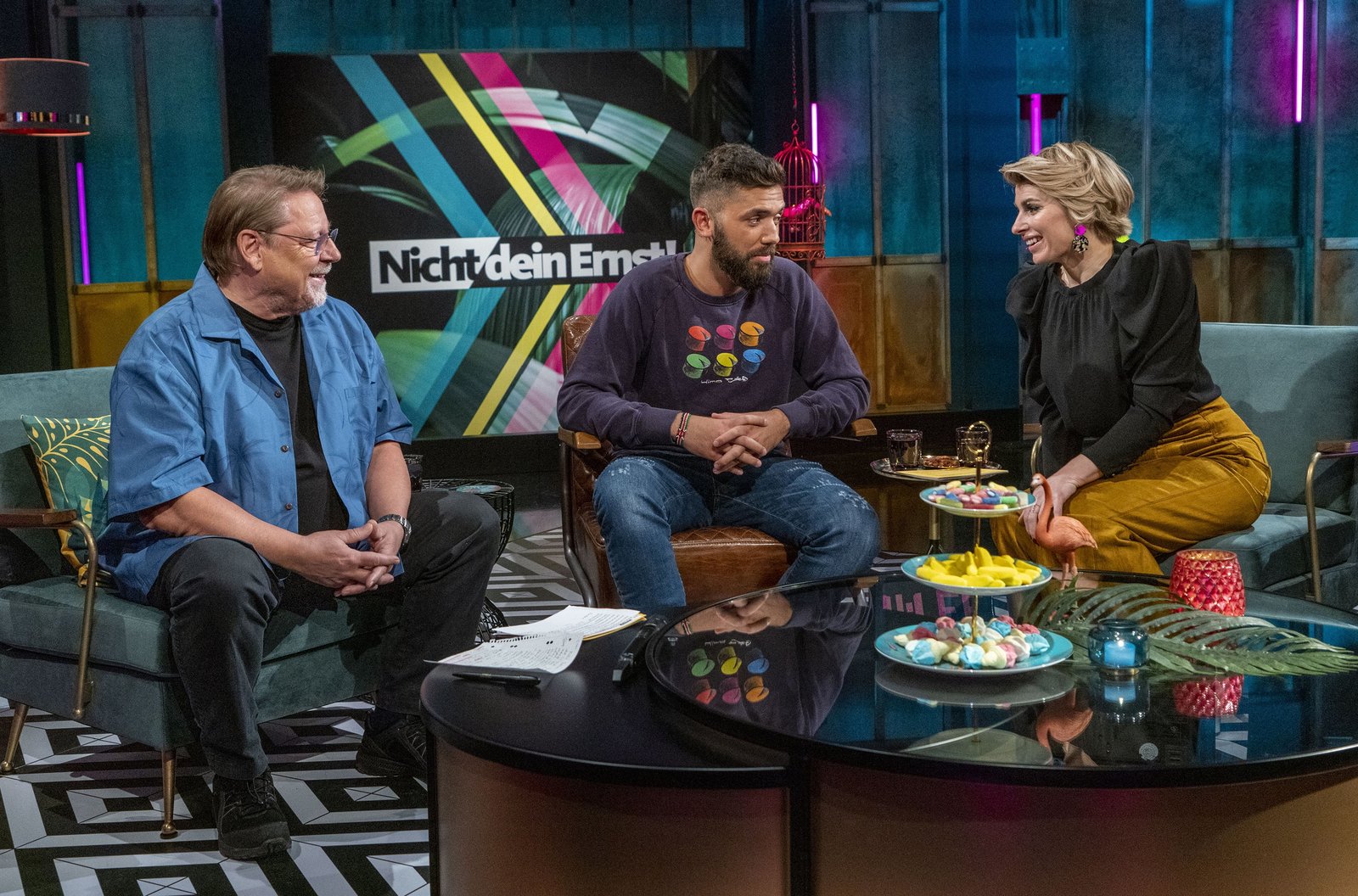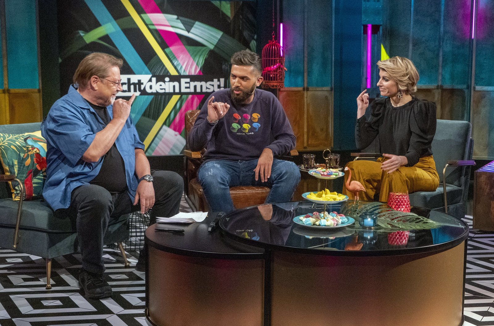Unter Leuten (Khalid Bounouar)Die Moderatoren Sabine Heinrich (r) und Jürgen von der Lippe (l) mit Gast Khalid Bounouar.Bild: © WDR/Max Kohr