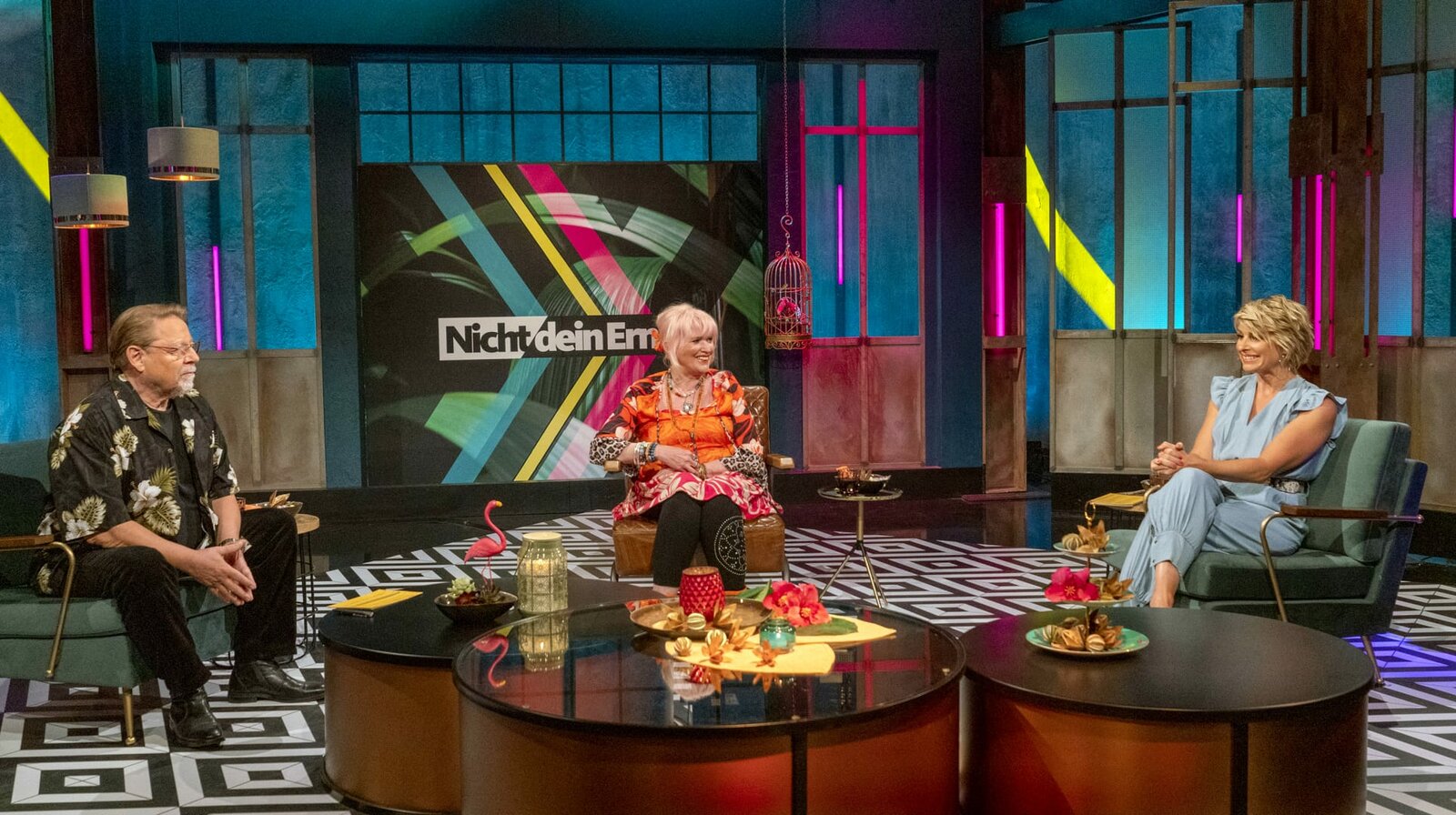 Im besten Alter (Gaby Köster)Die Moderatoren Sabine Heinrich (r) und Jürgen von der Lippe mit ihrem Gast Gaby Köster (M).Bild: © WDR/Max Kohr