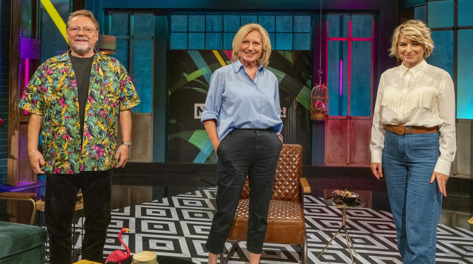 Eine Frage des Geschlechts (Maren Kroymann)Die Moderatoren Sabine Heinrich (r) und Jürgen von der Lippe (l) mit ihrem Gast Maren Kroymann.Bild: © WDR/Max Kohr