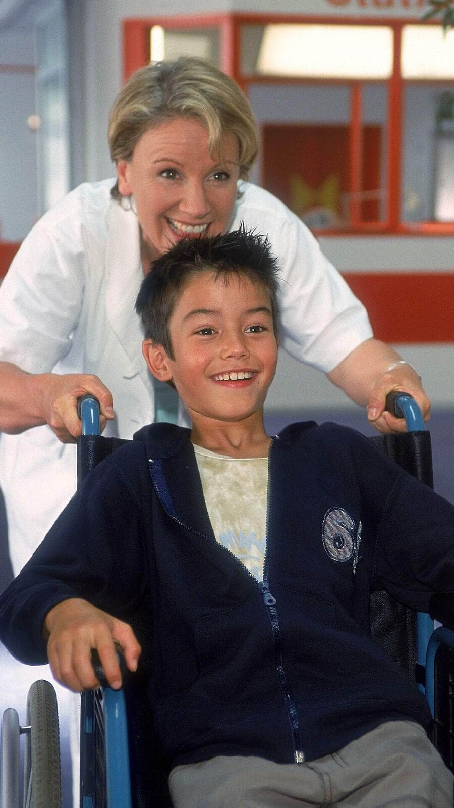 Papa PeterDa kann der Kleine wieder lachen: Um Hermann (Nikita Wokurka) aufzuheitern, dreht Nikola (Mariele Millowitsch) mit ihm schnell eine Runde im Rollstuhl über den Krankenhausflur...Bild: © MG RTL D