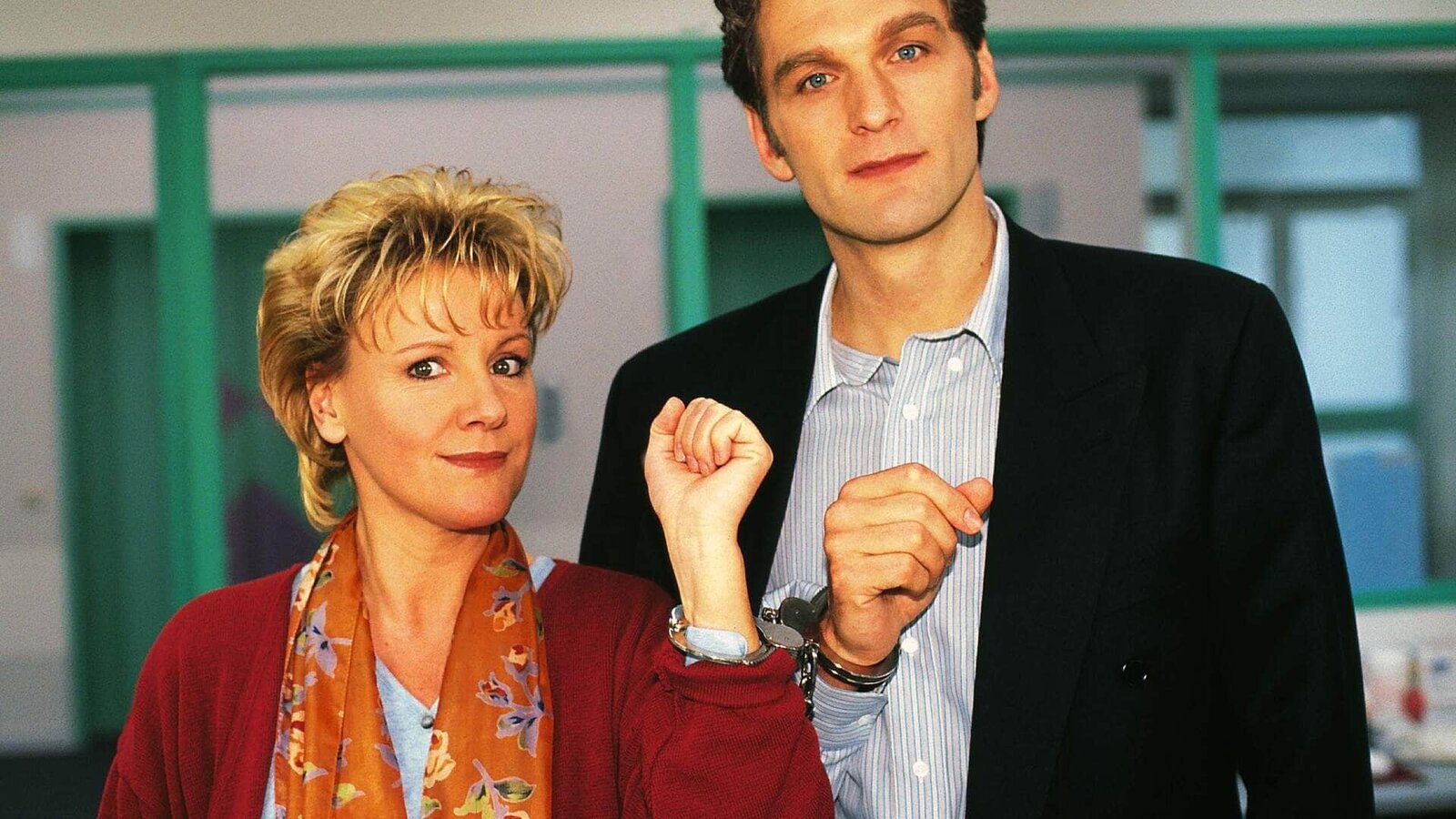 Die UnzertrennlichenSchwester Nikola (Mariele Millowitsch) und Dr. Schmidt (Walter Sittler) in Handschellen aneinander gekettet: Die beiden demonstrieren, was wahre Teamarbeit bedeutet.Bild: © RTL