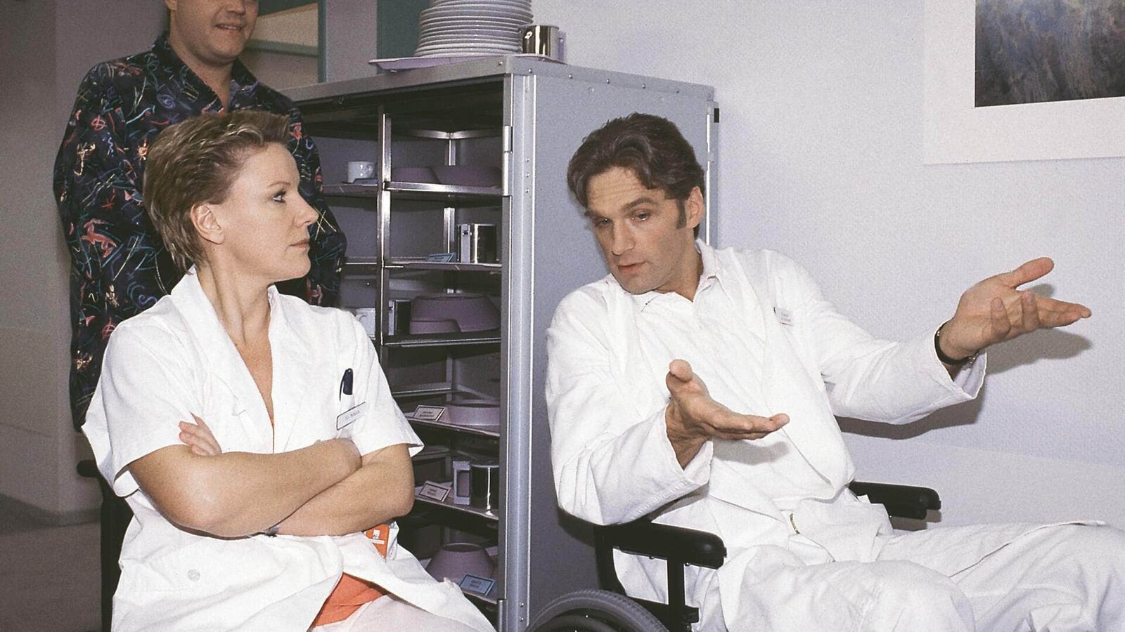 In geheimer MissionDr. Robert Schmidt (Walter Sittler) ist ganz und gar nicht begeistert von den eigenwilligen Arbeitsmethoden der neuen Stationsschwester Nikola Vollendorf (Mariele Millowitsch).Bild: © RTLplus