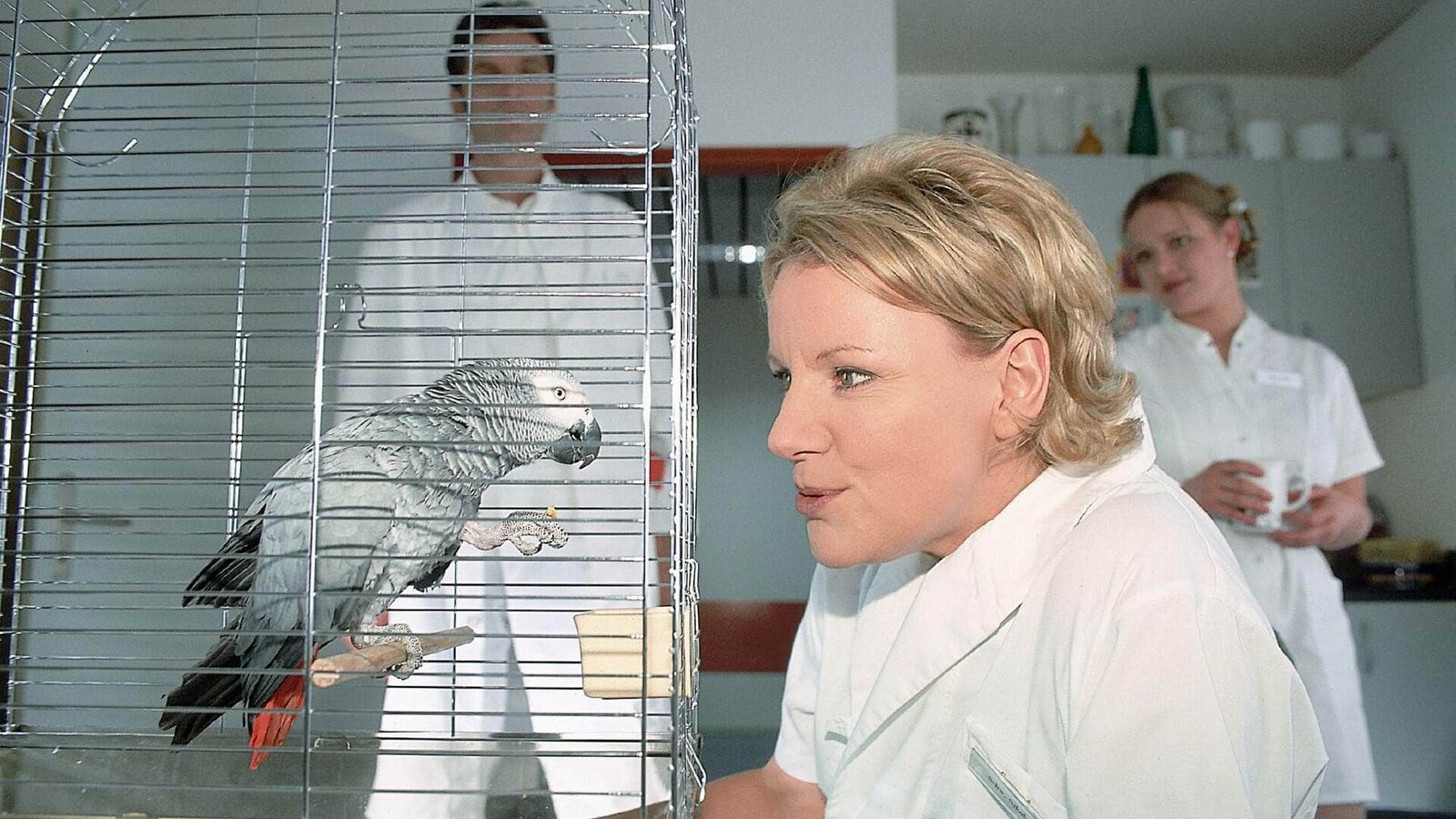 Lügen haben kurze BeineNikola (Mariele Millowitsch) ist ein Papagei zugeflogen, der ganz schön gelehrig ist. Da der Papagei sie allerdings nach einer gewissen Zeit nervt, beschließt sie ihn an Dr. Schmidt weiterzugeben.Bild: © MG RTL D