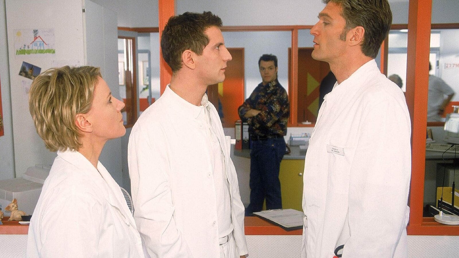 Der zweite Dr. SchmidtDer junge AIP'ler Dr. Brandt (Sebastian Münster, M.) bietet Dr. Schmidt (Walter Sittler) im Beisein von Nikola (Mariele Millowitsch) vom ersten Moment an die Stirn. Was Dr. Schmidt nicht weiß: Dr. Michael Brandt ist sein Sohn!Bild: © MG RTL D
