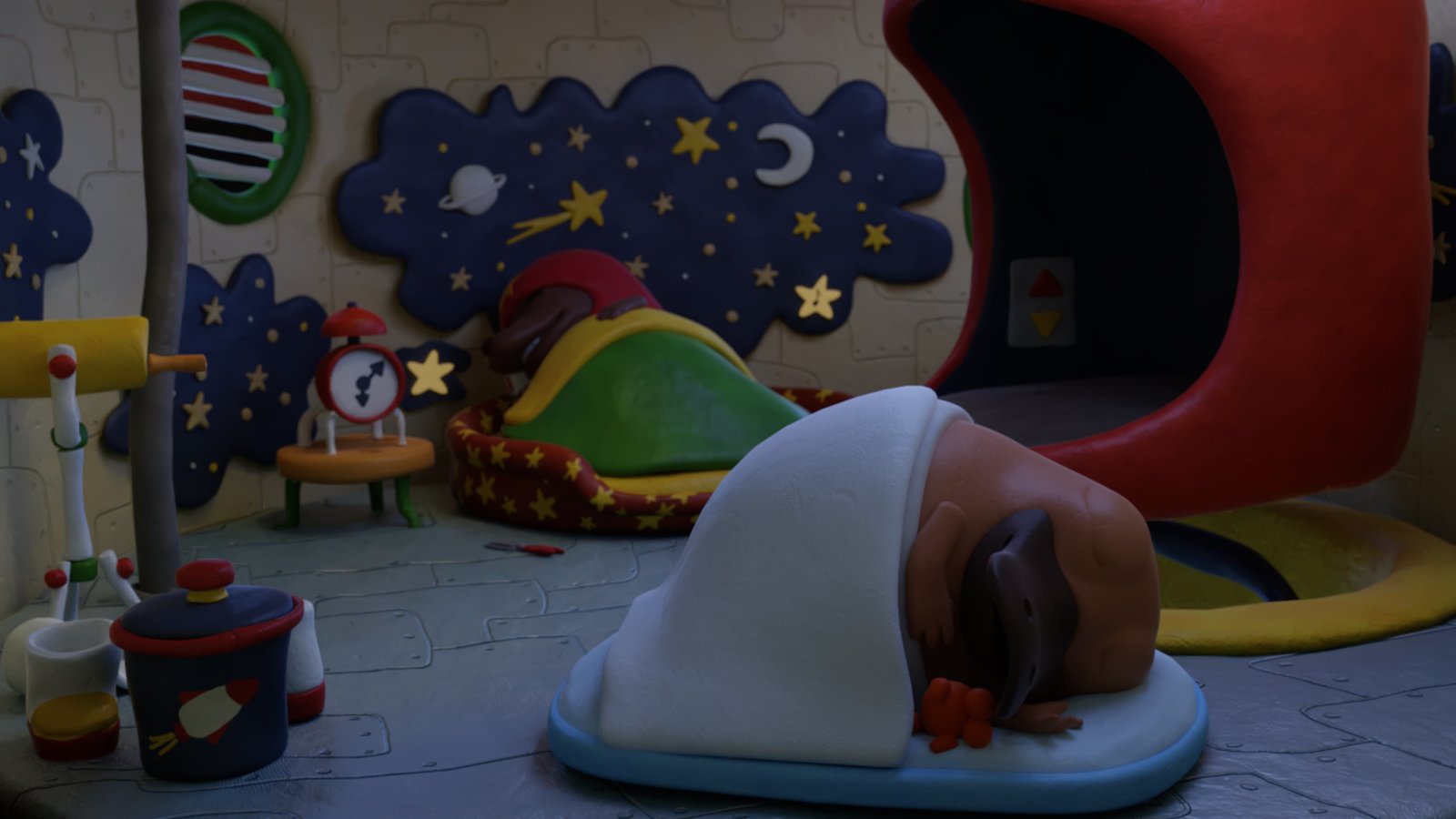 Ich bin der Präsident!Nö-Nö und Karli schlafen bei Tüftel.Bild: © hr/Miam/Autour de minuit