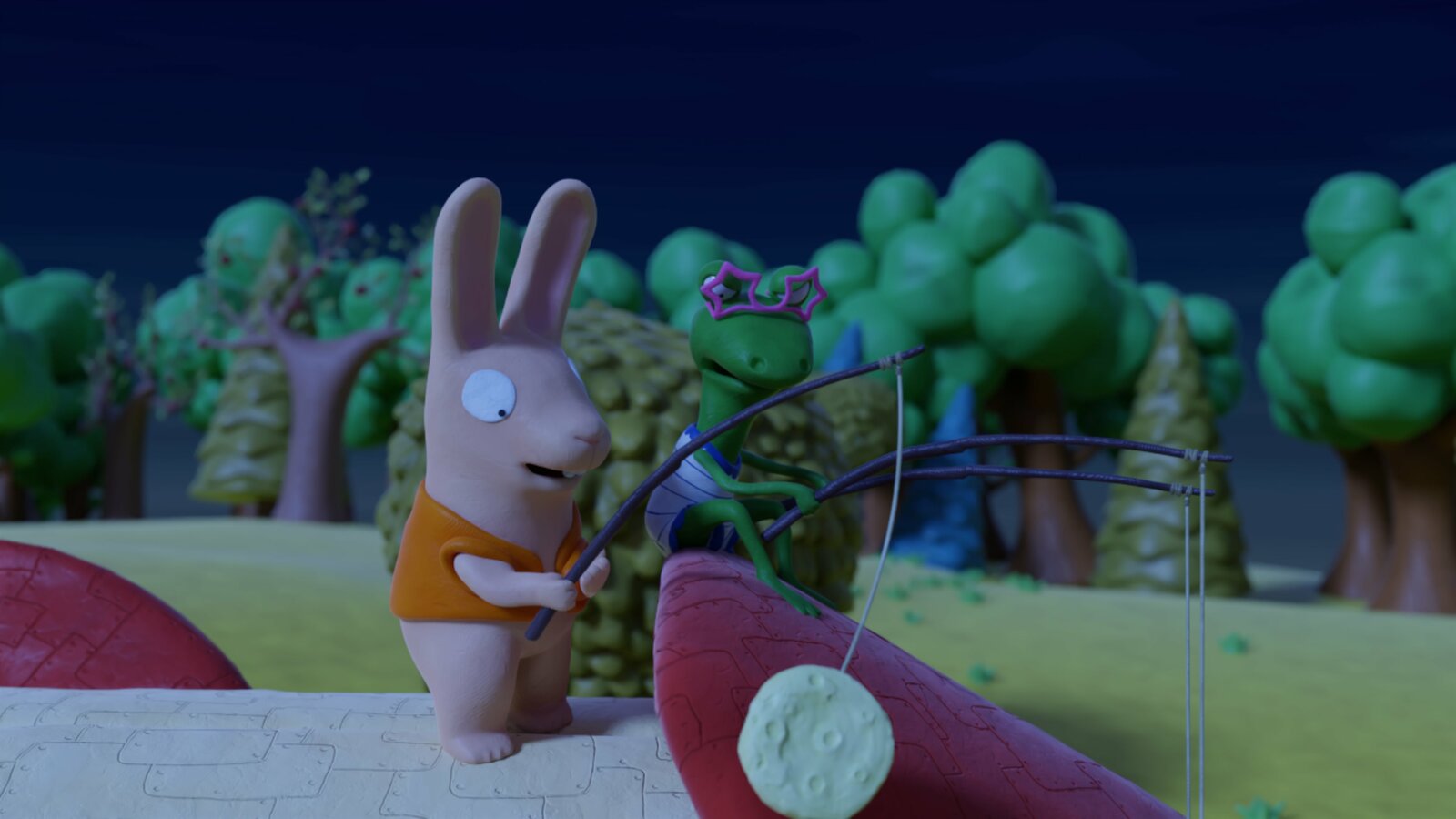 Ich will mehr Muskeln!Hase Bio und Undine beim AngelnBild: © hr/Miam/Autour de minuit