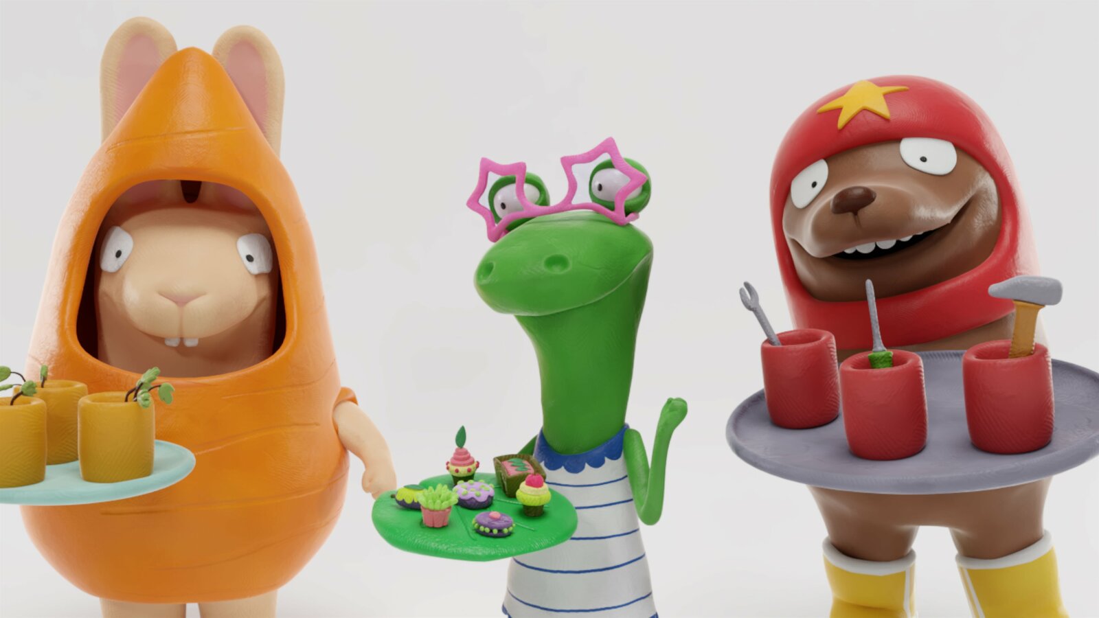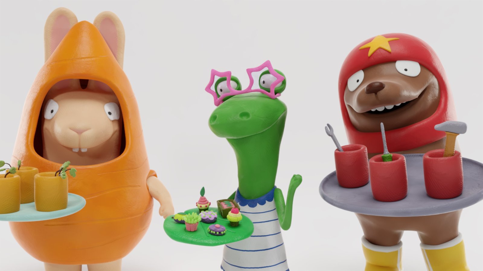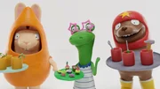 Ich fehle auf keiner Party!Machen eine Party: Bio, Undine und Tüftel (v.l.n.r.)Bild: © hr/Miam/Autour de minuit