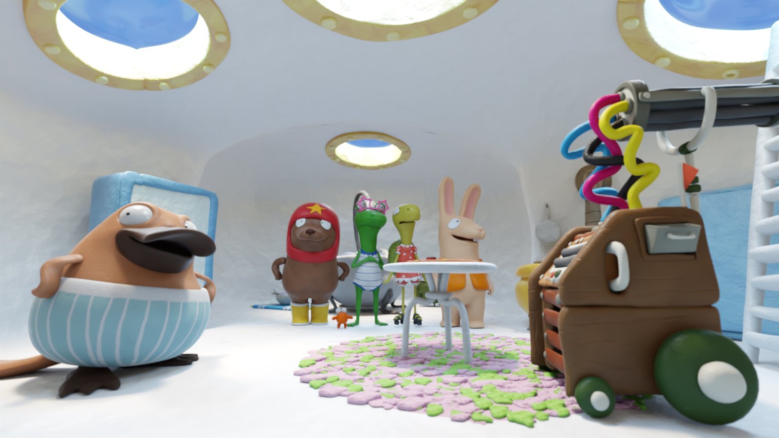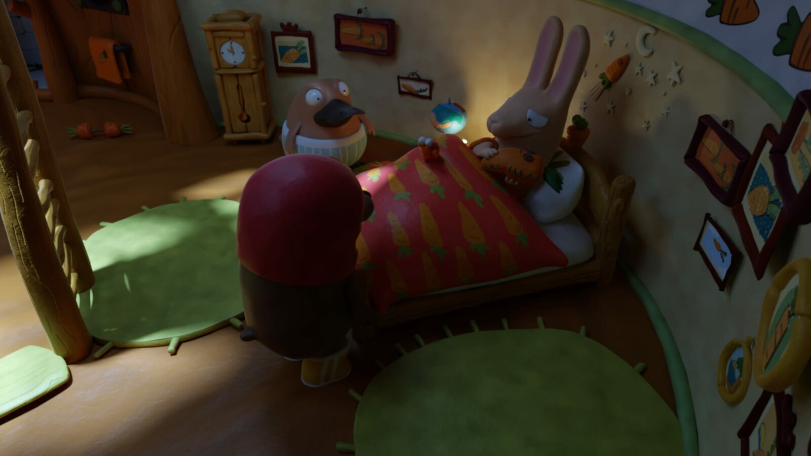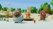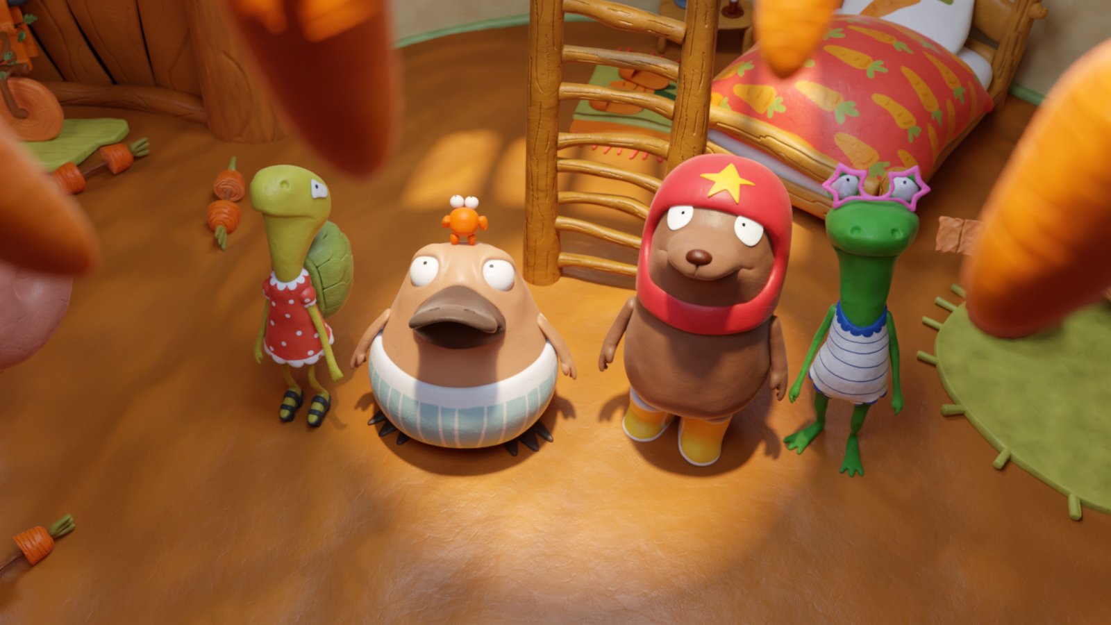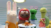 Ich bin ein Karotten-Beschützer!Begutachten die Decke: Marilu, Nö-Nö mit Karli, Tüftel und Undine.Bild: © hr/Miam/Autour de minuit