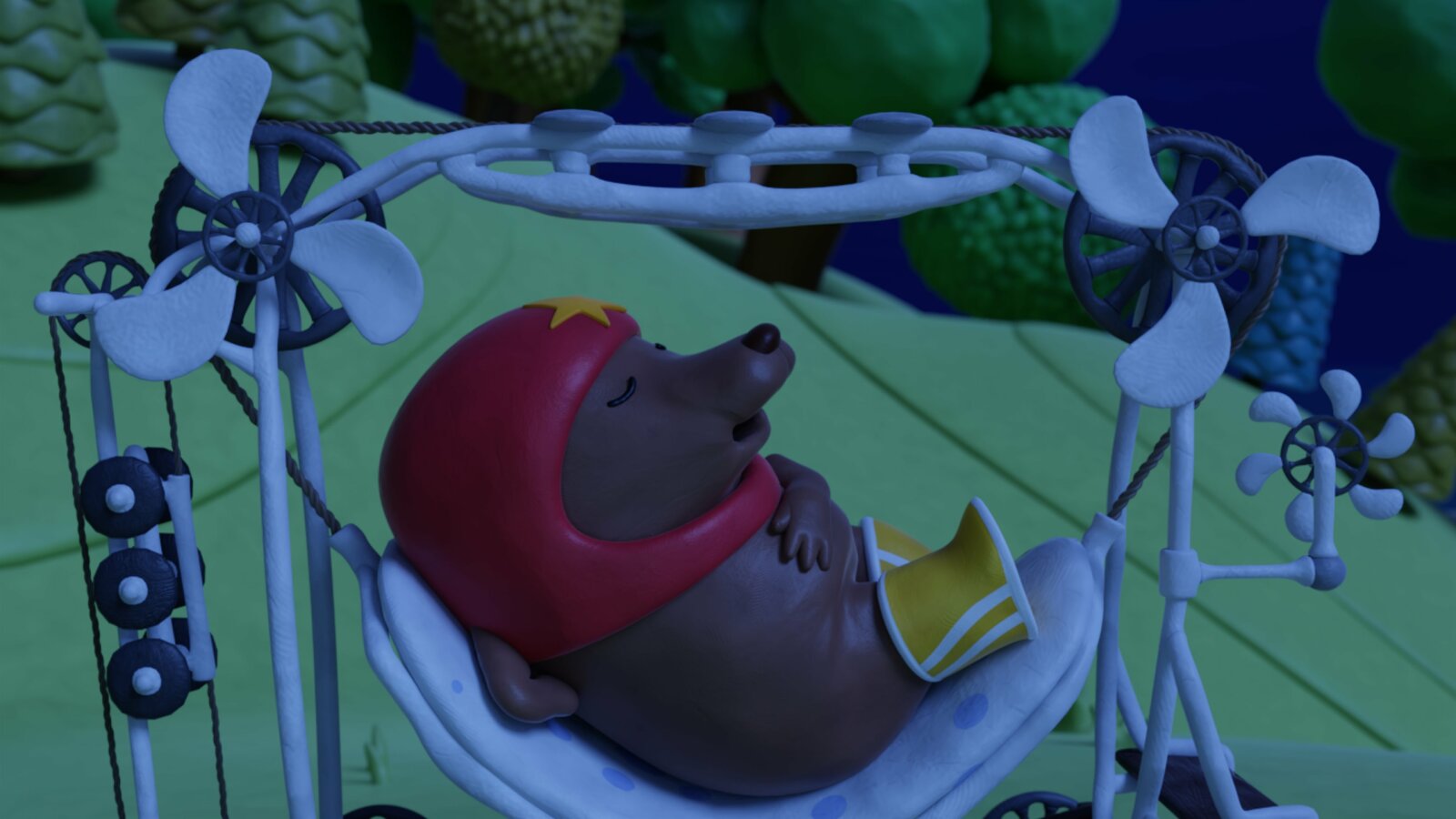 Ich kann nicht einschlafen!Tüftel macht ein Nickerchen.Bild: © hr/Miam/Autour de minuit