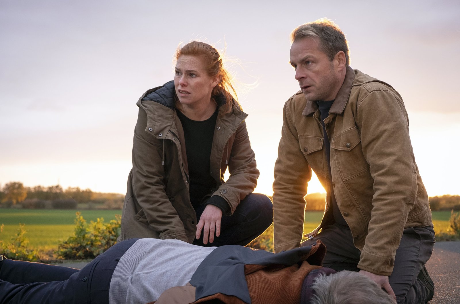 Ein Killer und ein halberNoch ein Toter: Lona (Henny Reents) und Hauke (Hinnerk Schönemann) kommen zu spät.Bild: © NDR/ARD Degeto/Christine Schroeder