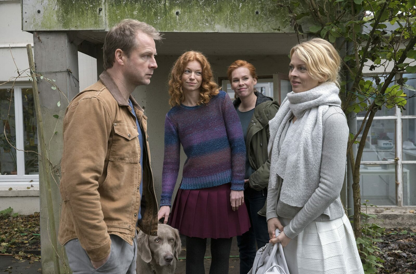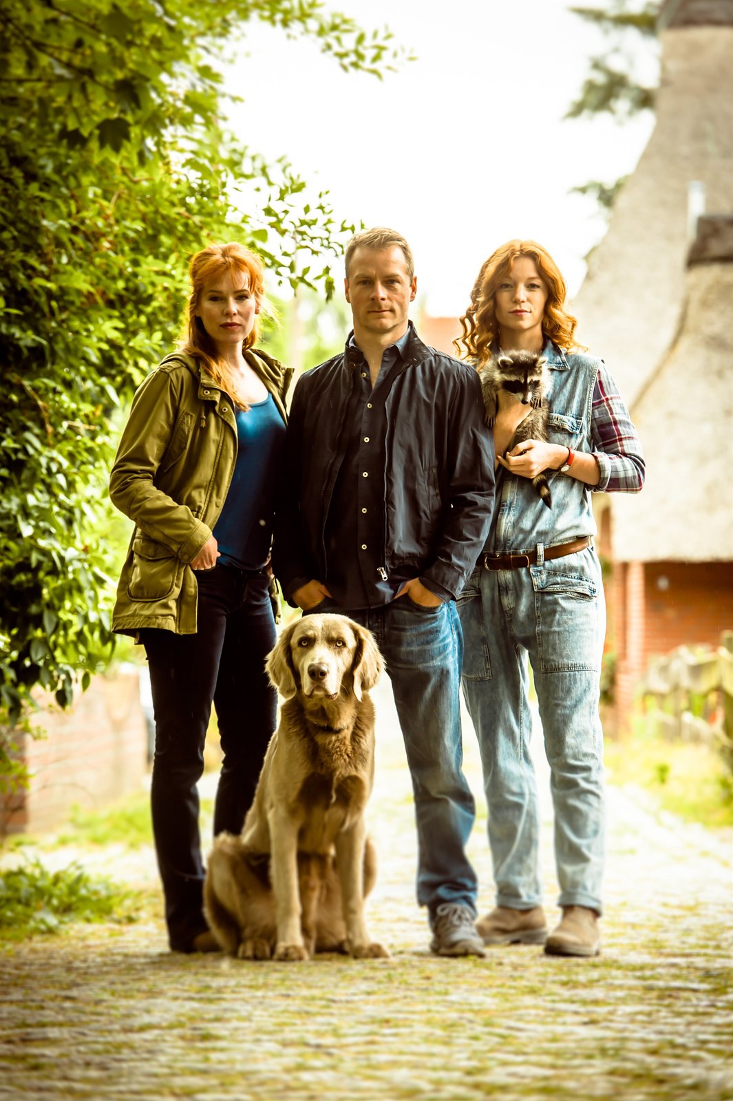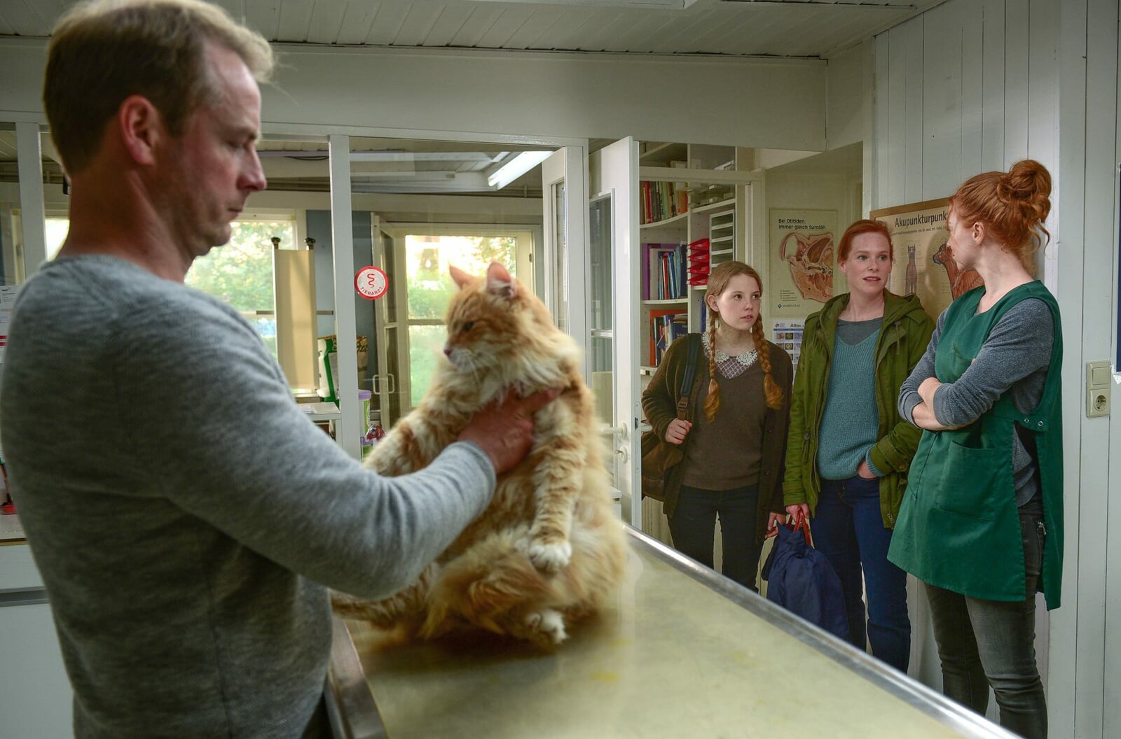 WaidmannsheilHauke (Hinnerk Schönemann) hat ein Händchen für Tiere. Ruth (Lilly von Klitzing, Henny Reents und Marleen Lohse, v.l.n.r.).Bild: © NDR/Degeto/Gordon Timpen
