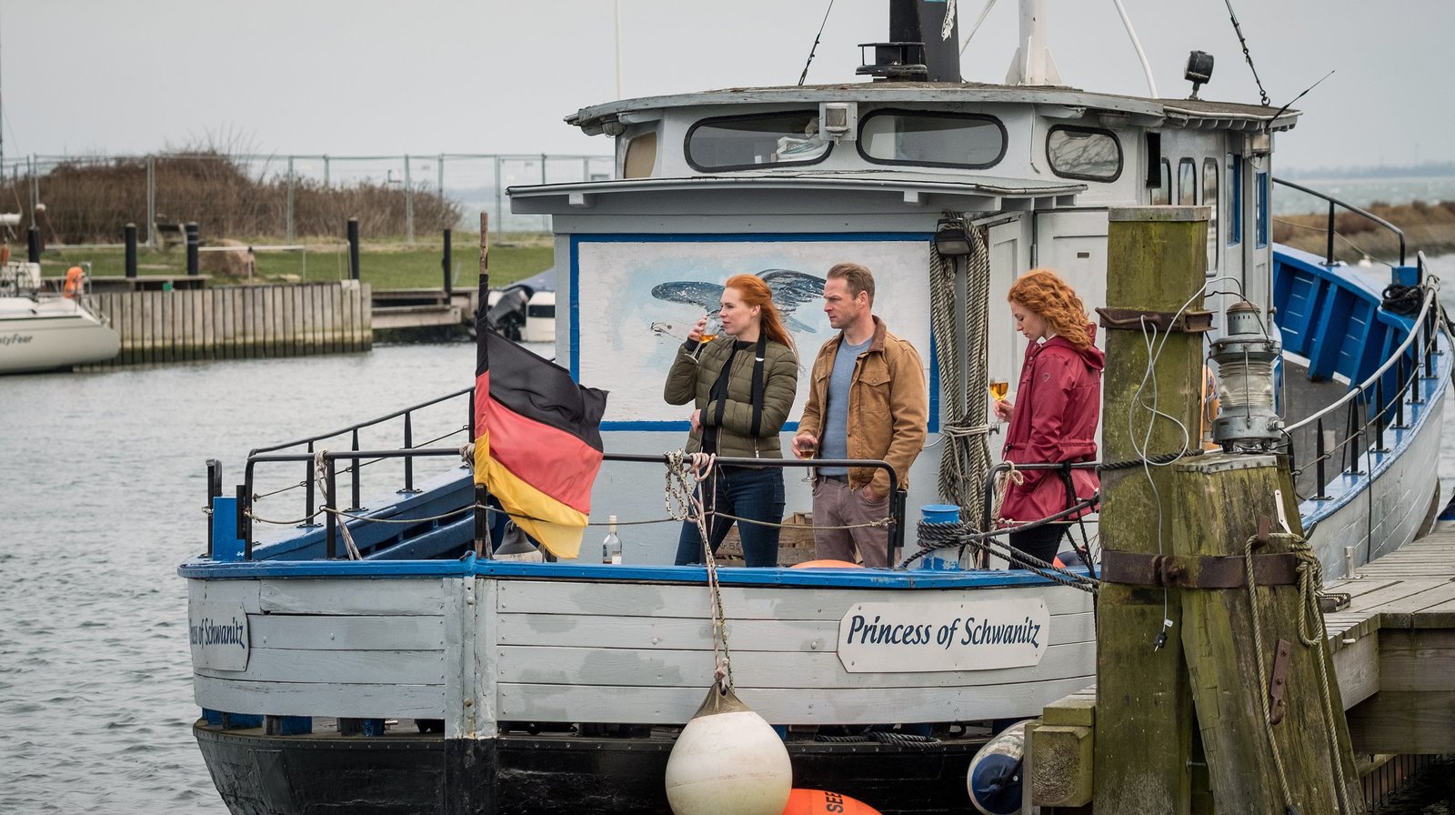 Estonia"Nord bei Nordwest - Estonia", Ein Schusswechsel in einer Seniorenresidenz jagt Dorfpolizistin Lona Vogt kalte Schauer über den Rücken. Dort lebt ihr verwitweter Vater Reimar. Tatsächlich verdichten sich alsbald die Hinweise, der ehemalige Handlungsreisende könnte von seiner dunklen Vergangenheit eingeholt worden sein. Ungewollt in den Fall verstrickt sich unterdessen Tierarzt Hauke Jacobs, als er - alarmiert von den Schüssen - dem verletzten Angreifer zu Hilfe eilen will. Mit letzter Kraft steckt ihm der Sterbende ein Stück Metall entgegen, dass ungeahnt viel Sprengkraft besitzt.Im Bild (v.li.): Henny Reents (Lona Vogt), Hinnerk Schönemann (Hauke Jacobs), Marleen Lohse (Jule Christiansen).Bild: © ORF 2