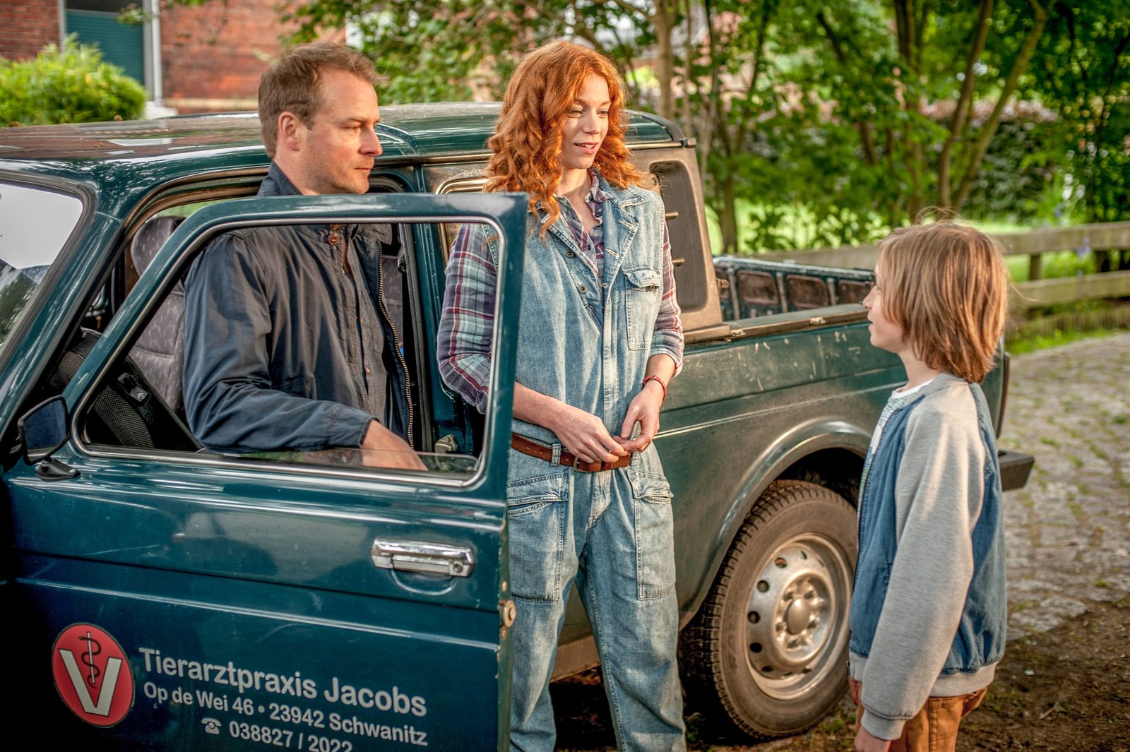 EstoniaDer kleine Kevin (Linas Mahncke, re.) erkundigt sich bei Hauke Jacobs (Hinnerk Schönemann, li.) und Jule Christiansen (Marleen Lohse, Mitte) nach dem Befinden seines Waschbärs.Bild: © ORF 2