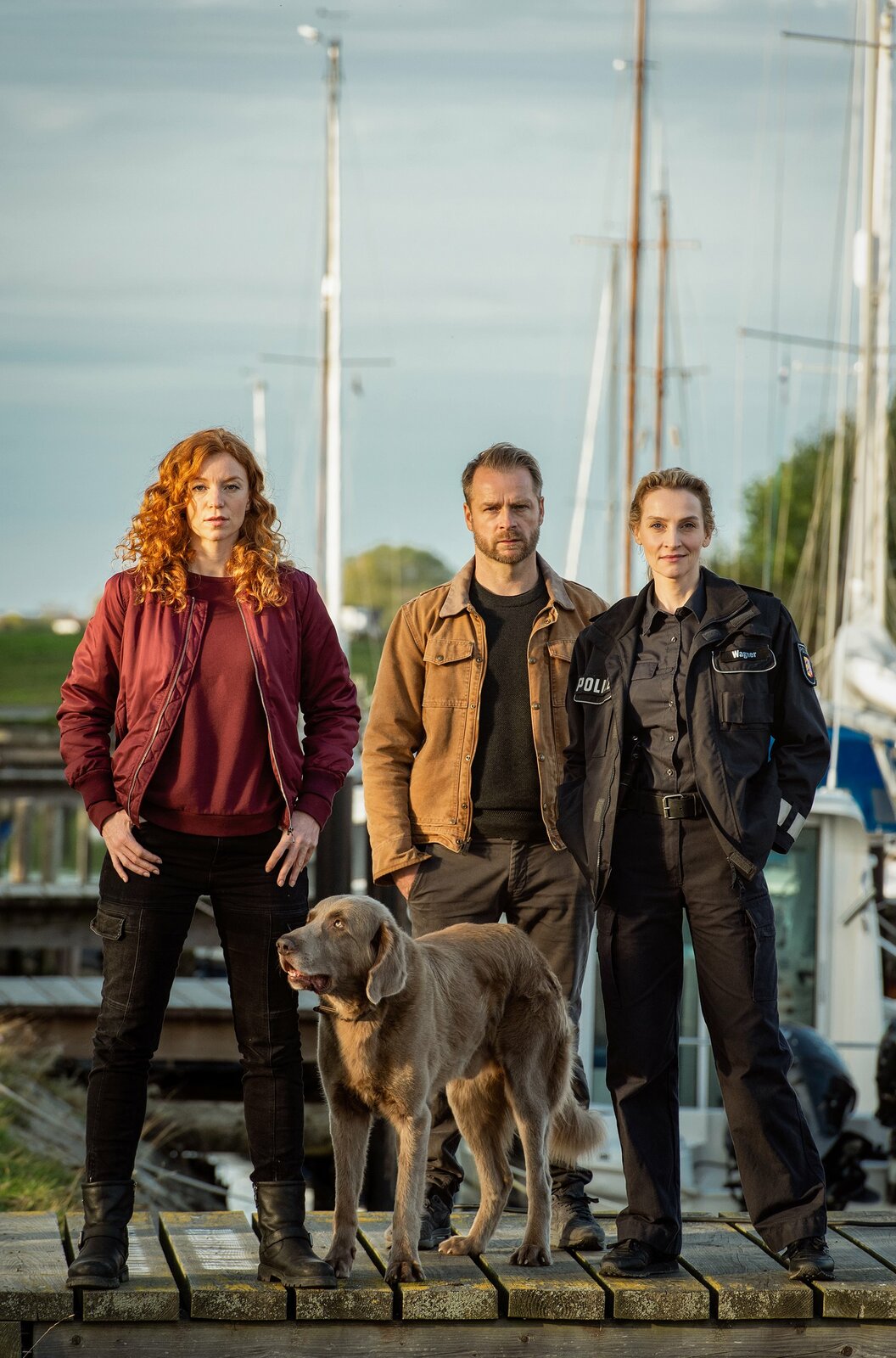 Gold!Lona Vogt (Henny Reents), Jule Christiansen (Marleen Lohse), Hauke Jakobs (Hinnerk Schönemann), Holly und haben es dank Lucky's Hilfe geschafft den Fall zu lösen.Bild: © NDR/ARD Degeto/Gordon Timpen