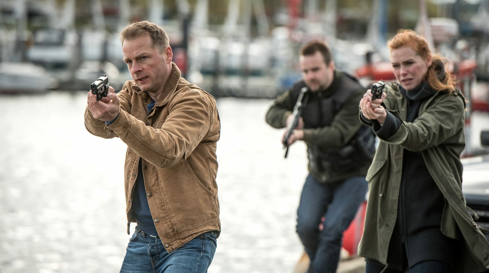 Der TransportHauke Jacobs (Hinnerk Schönemann) und Lona Vogt (Henny Reents) nehmen Nils Ek ins Visier.Bild: © NDR/Degeto/Gordon Timpen