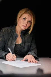 Clüver und die tödliche AffäreBernadette Kipling (Annette Frier) gerät im Verhör unter Druck und entscheidet sich für einen riskanten Schritt.Bild: © ZDF und Simon Vogler