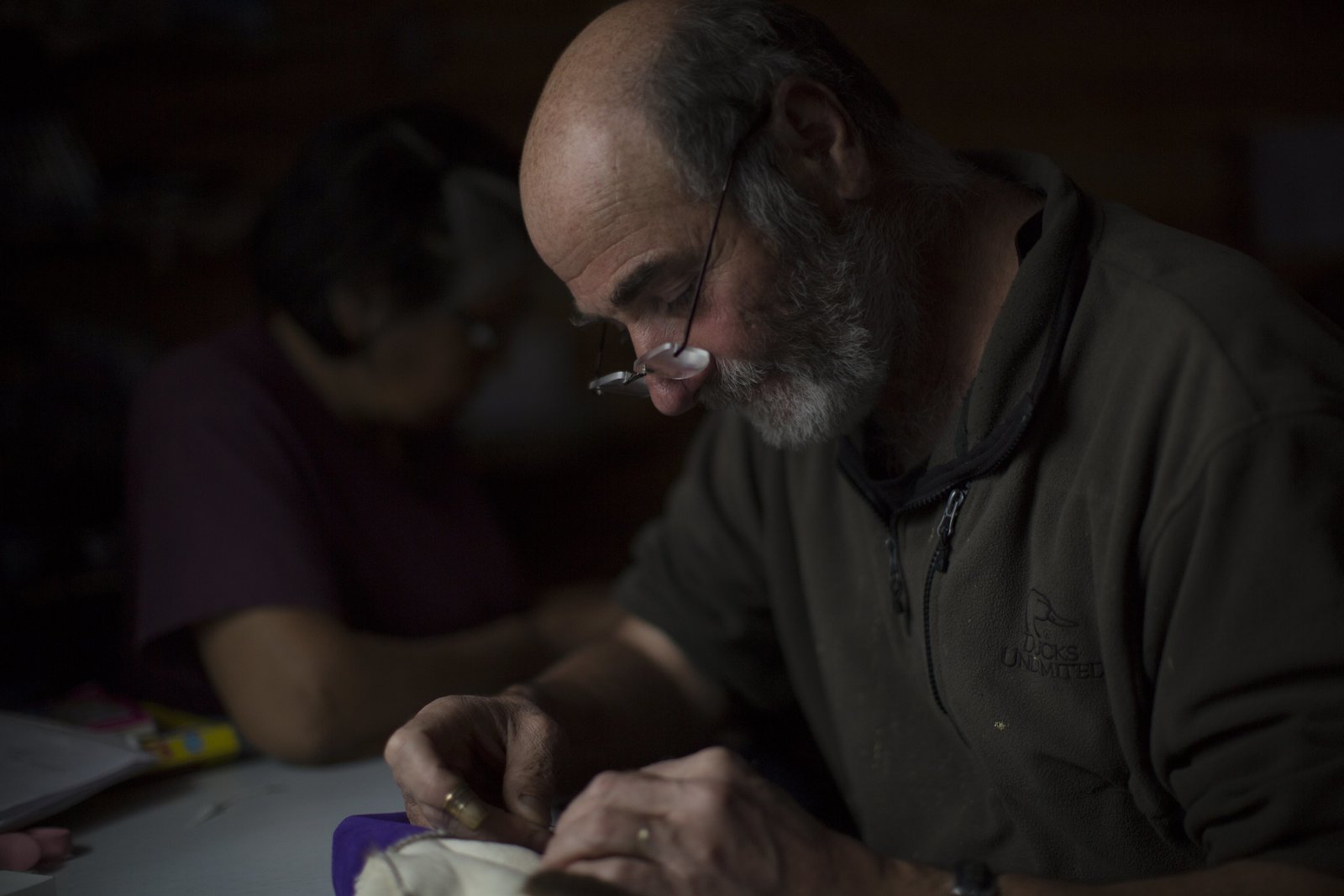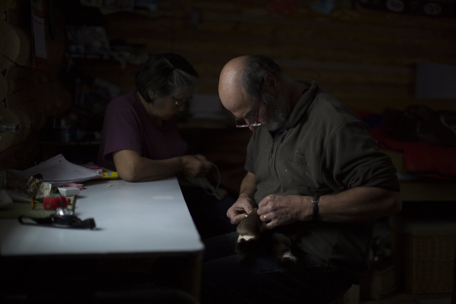 Spätsommer in AlaskaHeimo mending his outfit.Bild: © Discovery Channel / Discovery Communications
