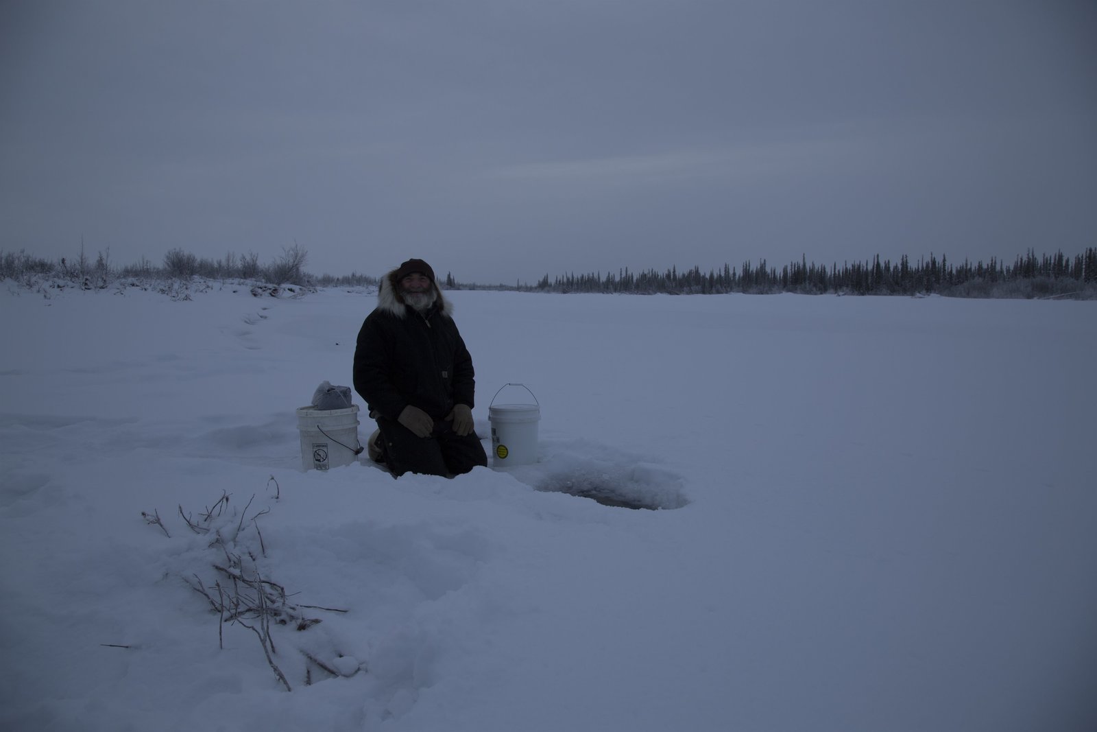 Rückkehr in die WildnisHeimo Korth is ice fishing.Bild: © Discovery Channel / Discovery Communications