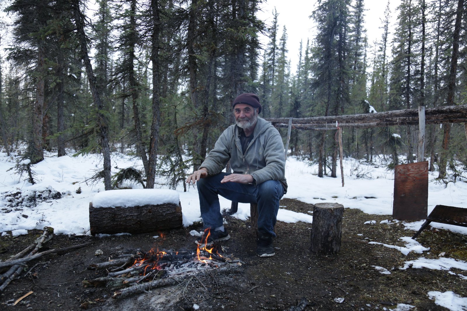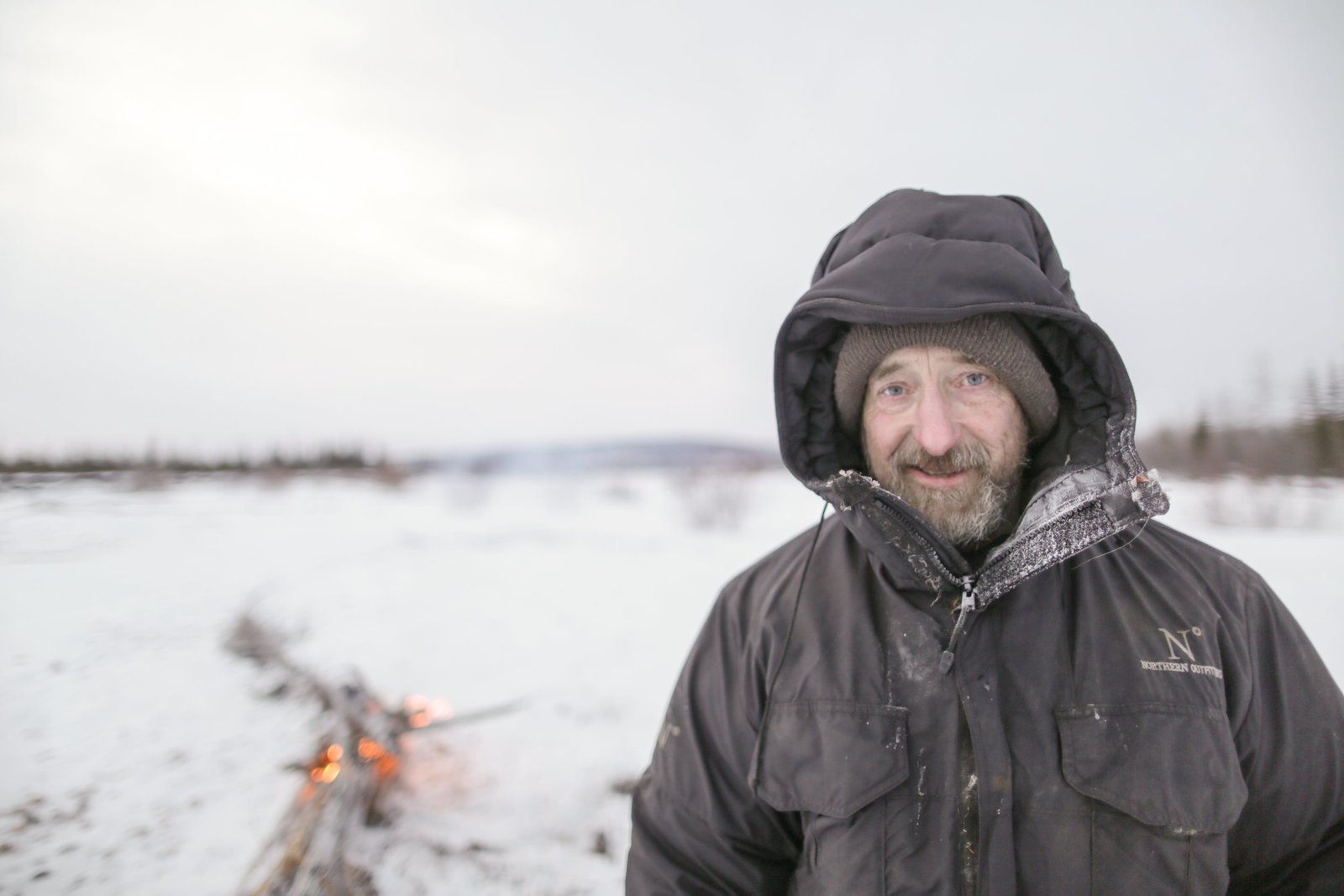 Auf der PirschHeimo warms up by the camp fire.Bild: © Discovery Channel / Discovery Communications