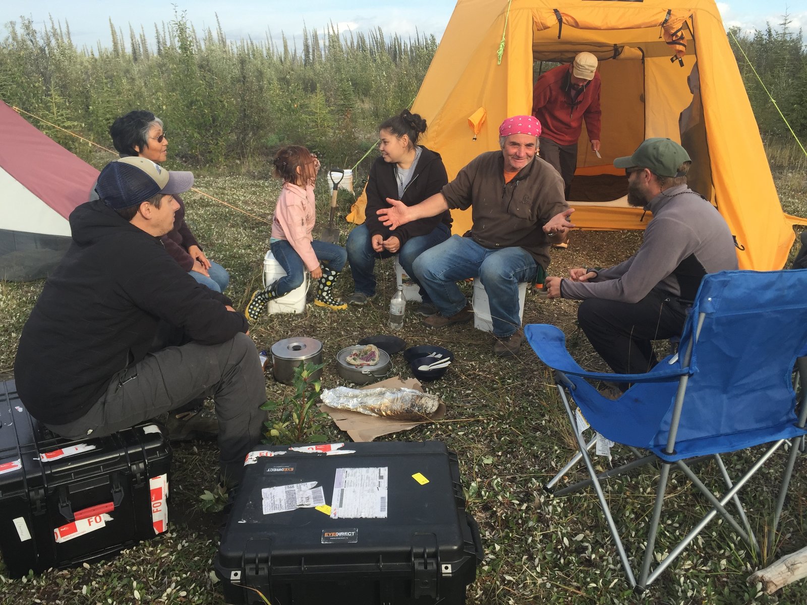 Einsamkeit in der WildnisBehind the scenes of the crew sitting around with the Korth family at the campsite.Bild: © Discovery Channel