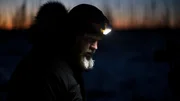 Auf dünnem EisHeimo Korth outside cabin preparing to hunt for moose on snow mobile.Bild: © Discovery Communications