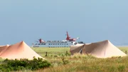 Spiekeroog-Fähre vorm Camping in den Dünen. (Bild: © NDR