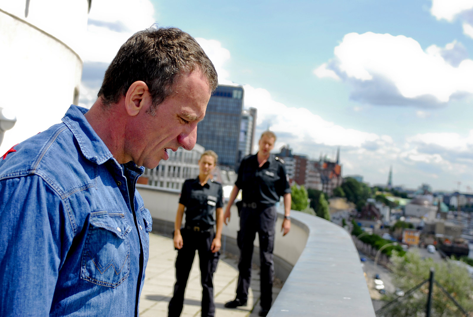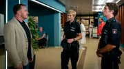 Kleine HafenrundfahrtMelanie (Sanna Englund, M.) und Mattes (Matthias Schloo, r.) müssen Volker Bruns (Florian Reiners, l.) sagen, dass es sich bei dem schwerverletzten jungen Mann um dessen von ihm als vermisst gemeldeten Sohn handelt.Bild: © ZDF und Boris Lasewen./Boris Lasewen